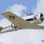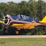 Stewart Hopkins’ marvelous North American T-28B Trojan leaping into the air at AirVenture. This example, Bu.140009, although marked as a USMC example based at MCAS Beaufort, SC started life in the U.S. Navy, and served with VT-27 at NAS Corpus Christi, Texas, VT-2 out of NAS Whiting Field near Milton, Florida and concluded her service at NAS Pensacola in 1983. Today she is based in Doylestown, PA. (photo by George Land)