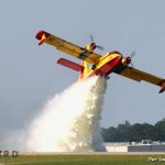A Buffalo Airways Canadair CL-215 ‘Scooper’ water bomber demonstrating its prowess in delivering water over a fire to put it out. This aircraft, registered C-GBPD, is based in Yellowknife, North West Territories in Canada. (photo by Parr Yonemoto)
