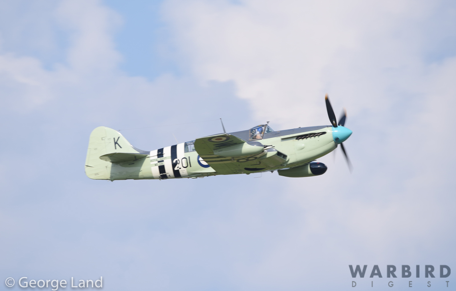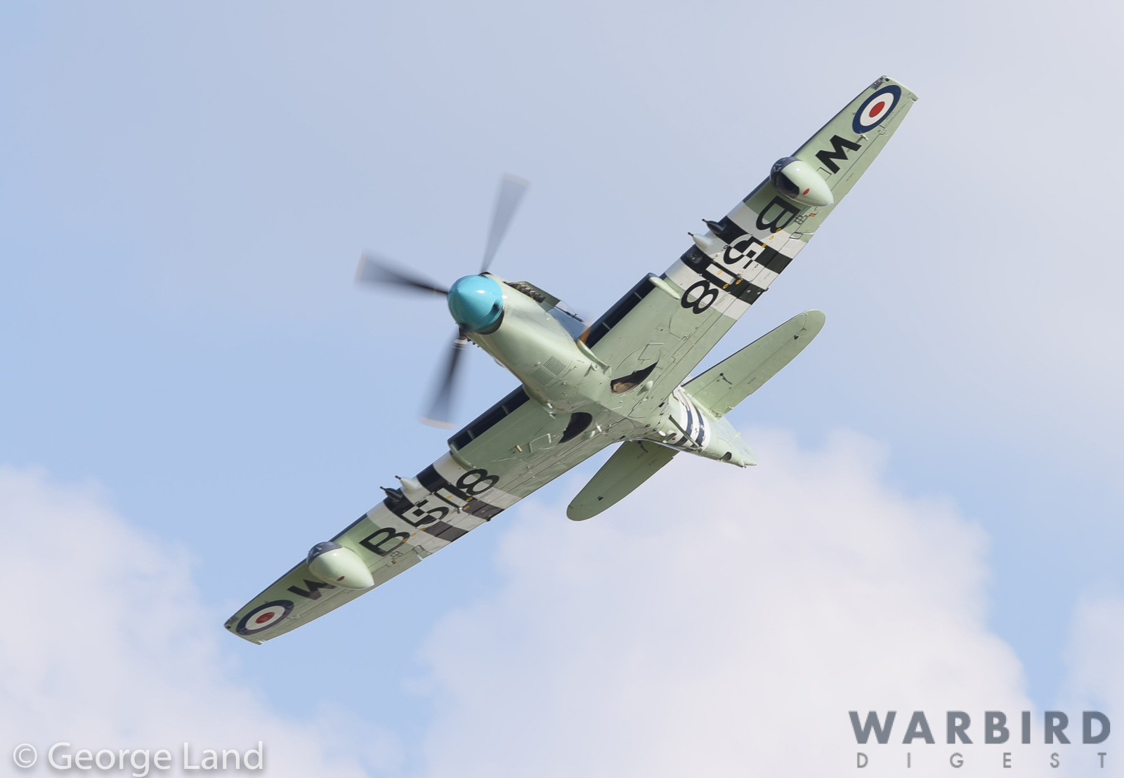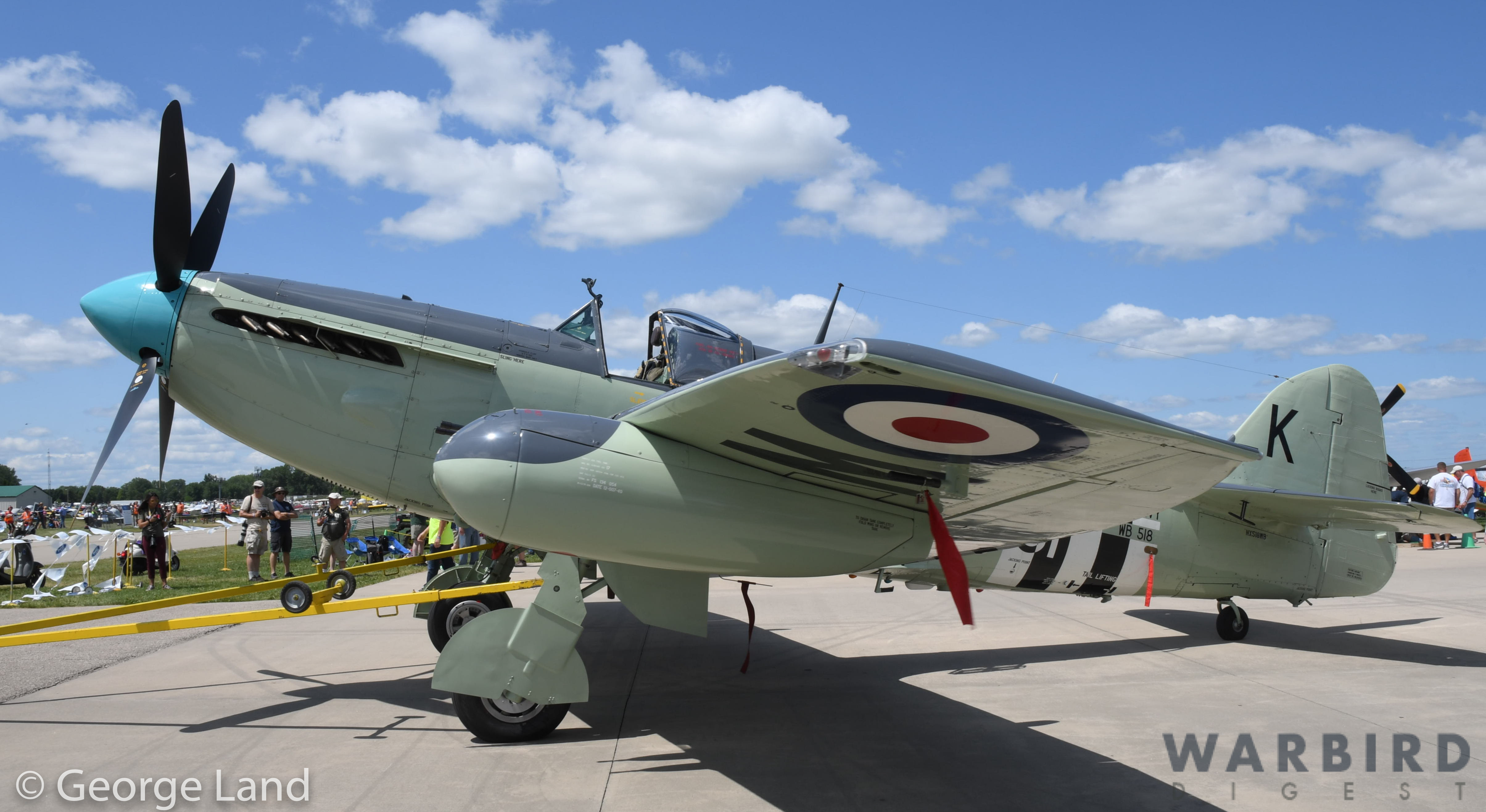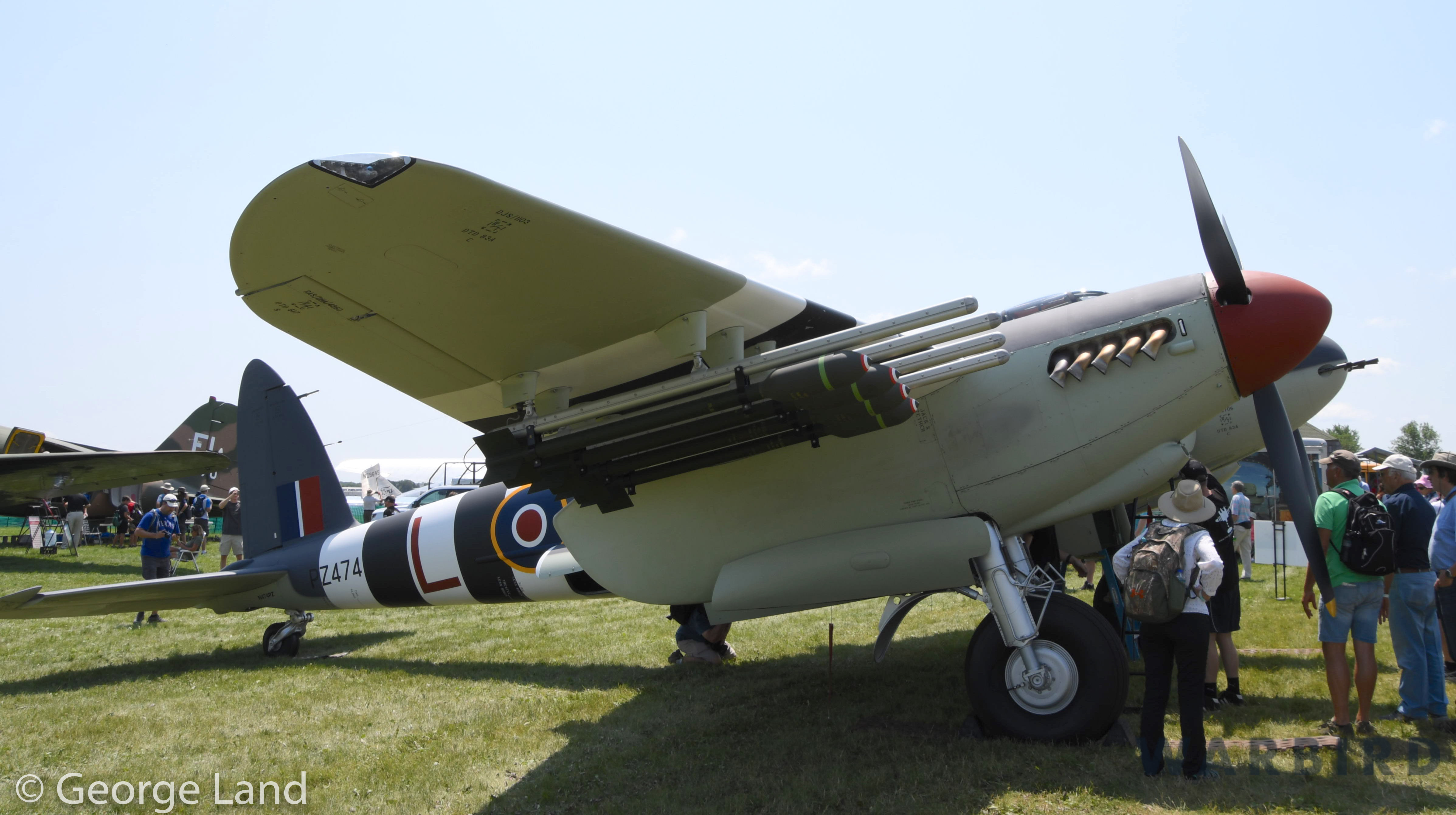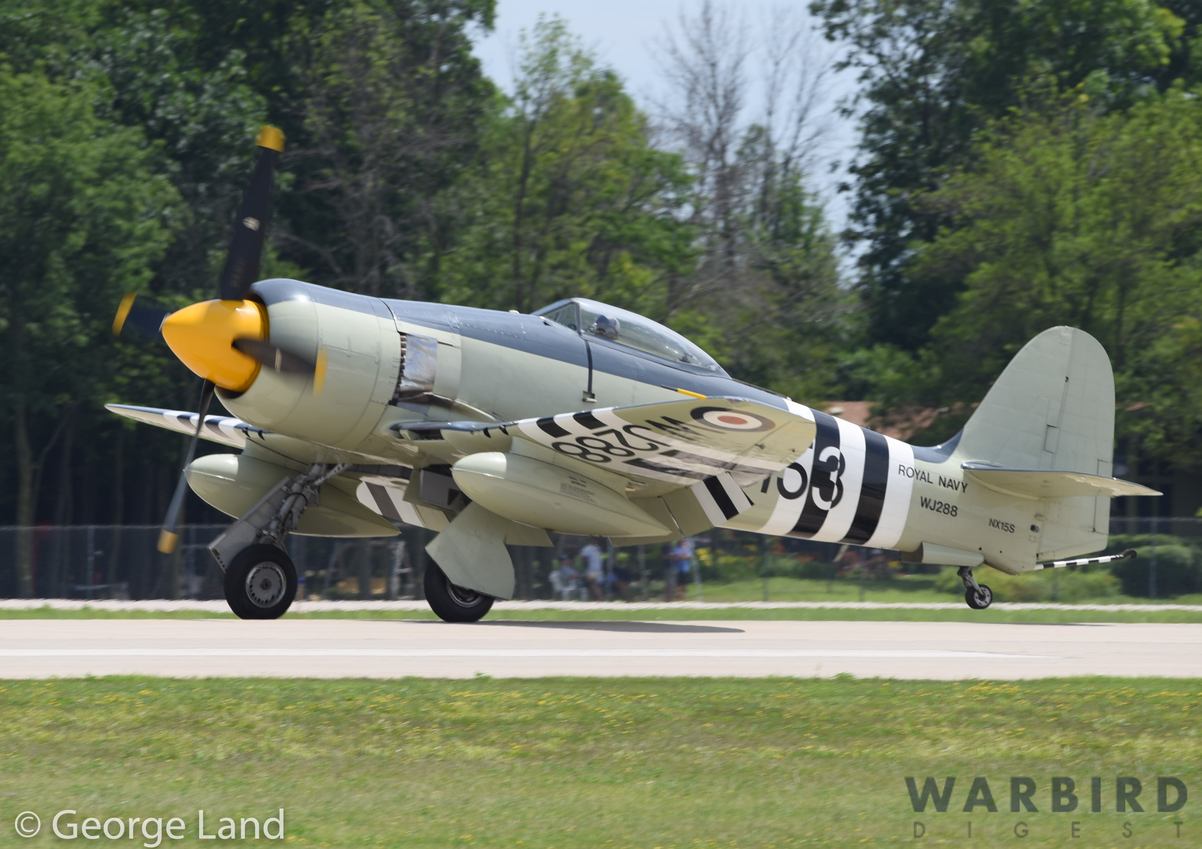 Hawker Sea Fury FB.10 WJ288.z This aircraft served in the Royal Navy’s Fleet Air Arm, and is painted to represent an aircraft with 804 Squadron aboard the carrier HMS Theseus in late 1952. Sadly, she had her original Bristol Centaurus powerplant replaced by a Wright R-3350. The aircraft is currently based with Periscope Asset Management in Tulsa, Oklahoma. (photo by George Land)
