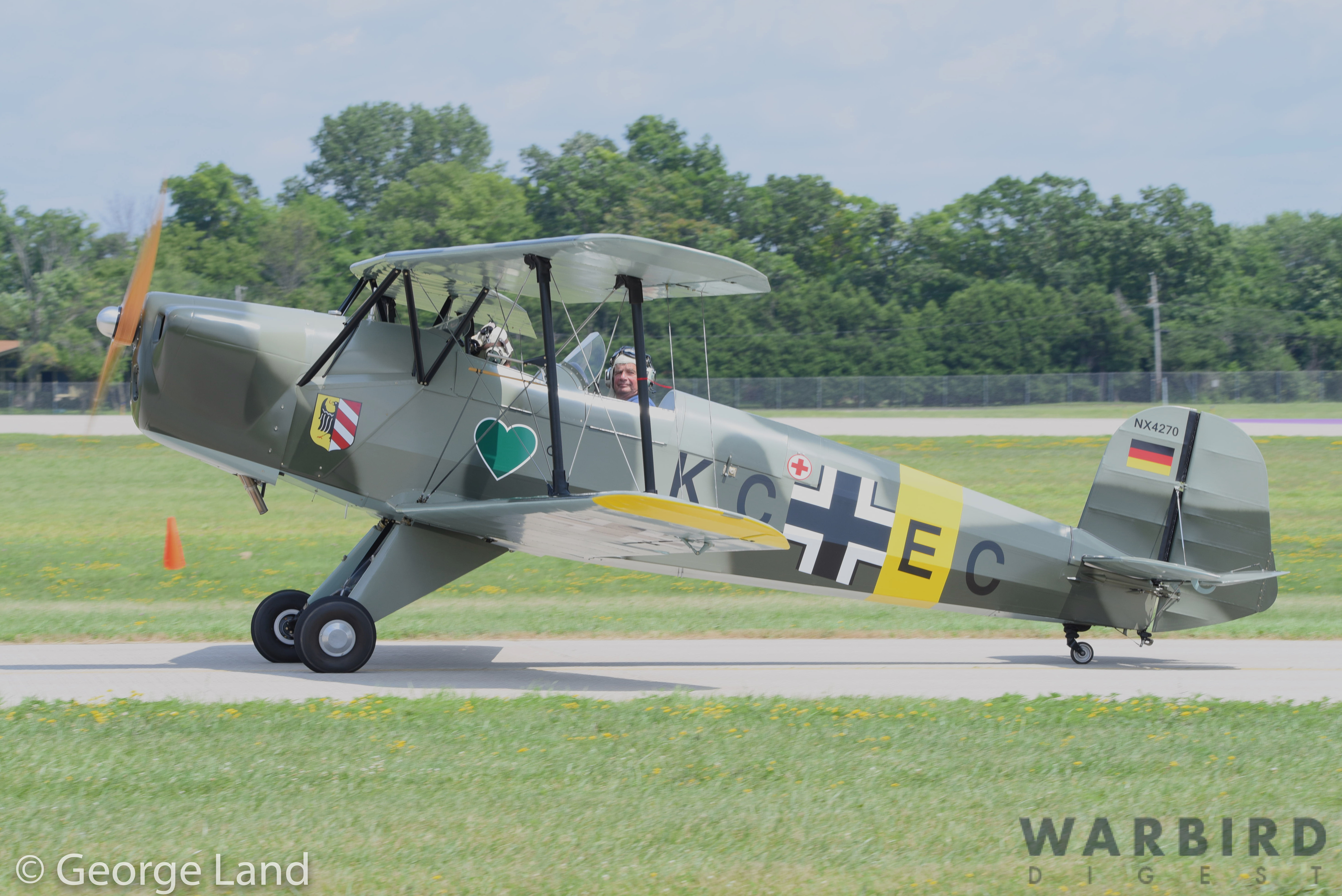 A CASA 1.131 (a Spanish-built variant of the Bucker Bu-131 Jungmann) taxiing by at AirVenture marked as its German forebear. This example belongs to Edwin Campbell of Hookstown, PA. (photo by George Land)