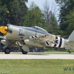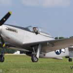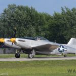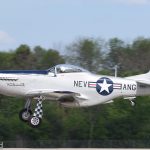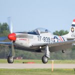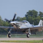 The Dakota Territory Museum’s P-51C Mustang Lope’s Hope 3rd on takeoff during the massive Mustang flight in honor of Col. Clarence ‘Bud’ Anderson at EAA AirVenture Oshkosh 2019 on Thursday July 25th. (photo by George Land)