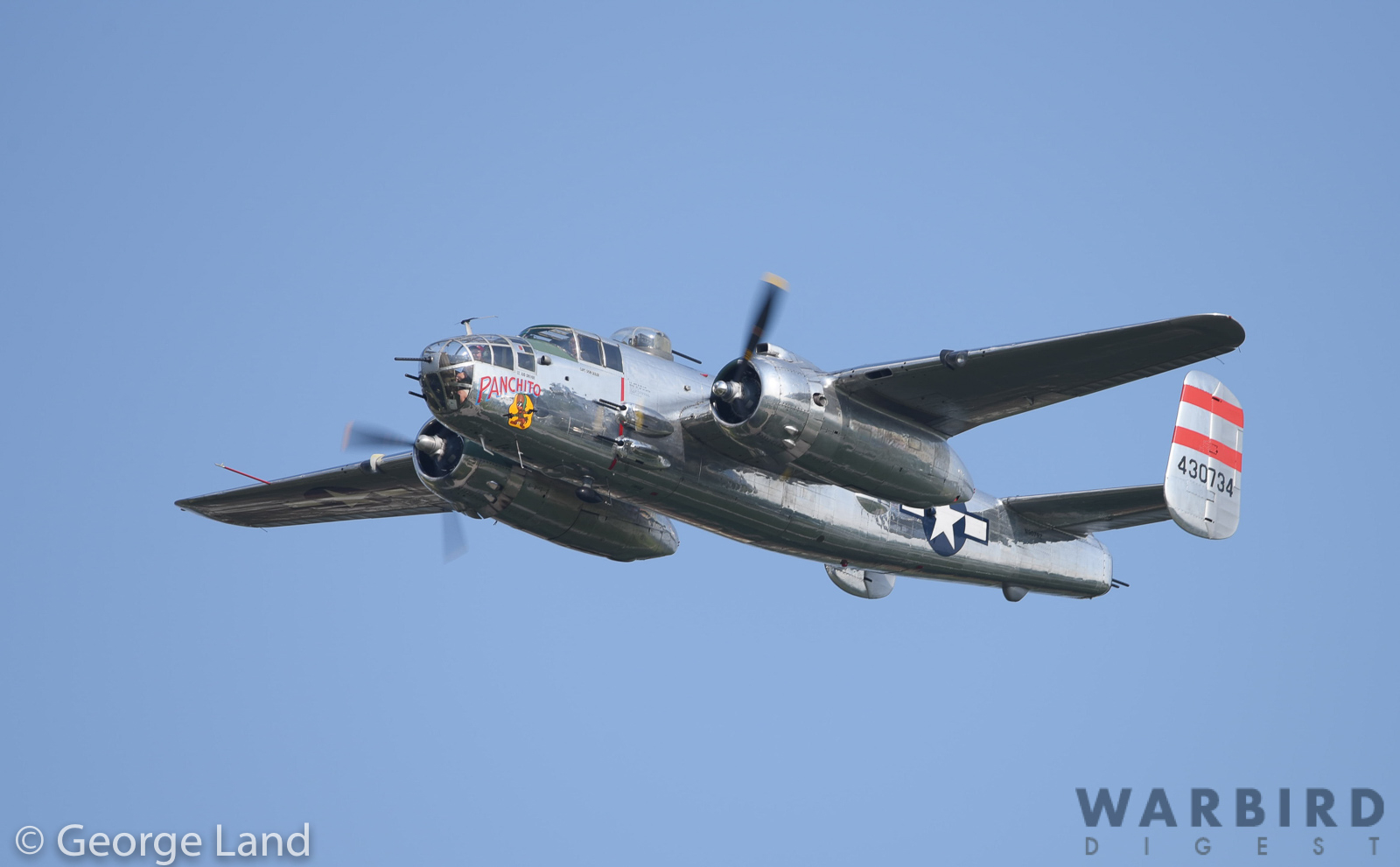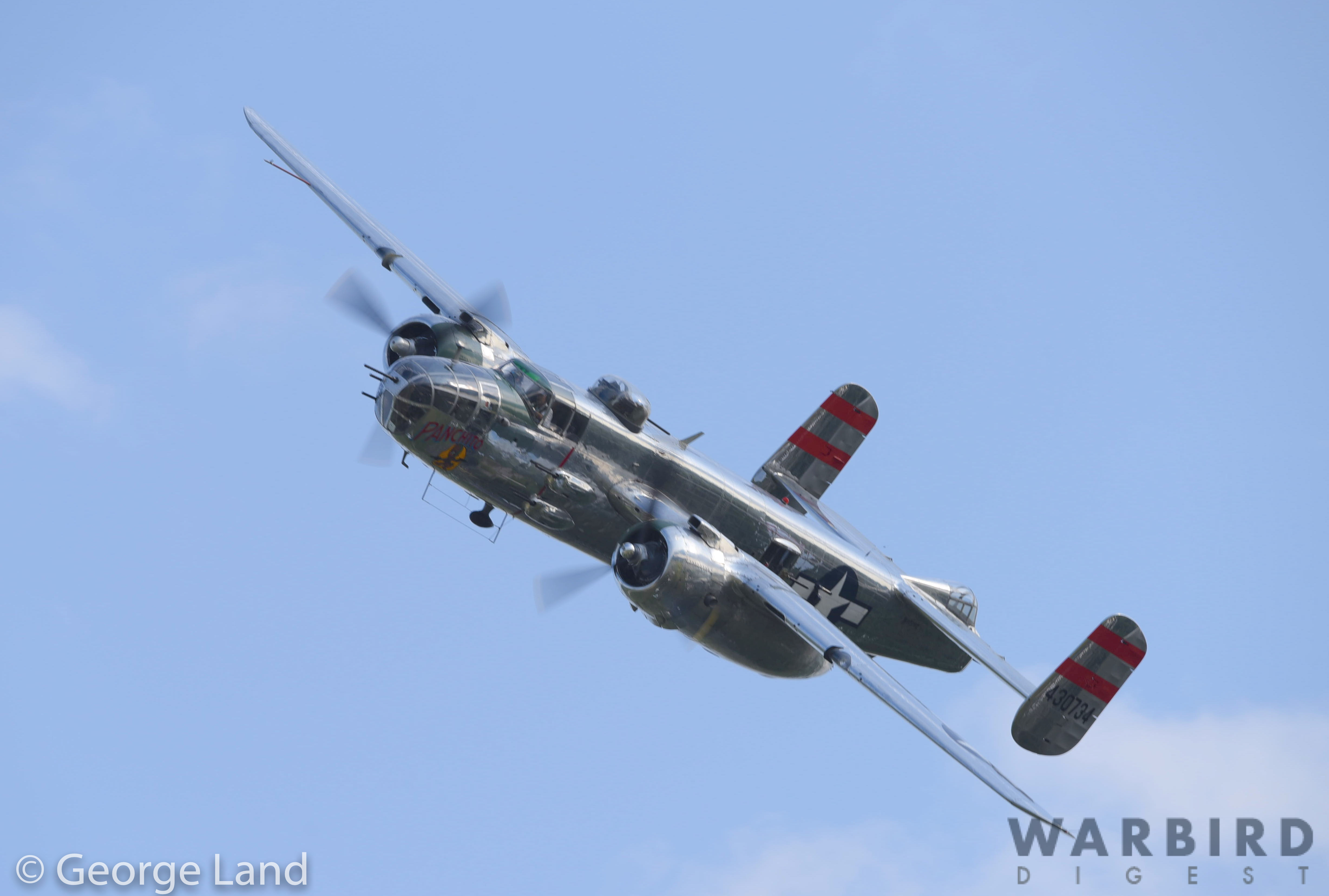 Larry Kelley’s magnificent B-25J Mitchell known as Panchito. This aircraft often flies air-to-air photo sorties. (photo by George Land)