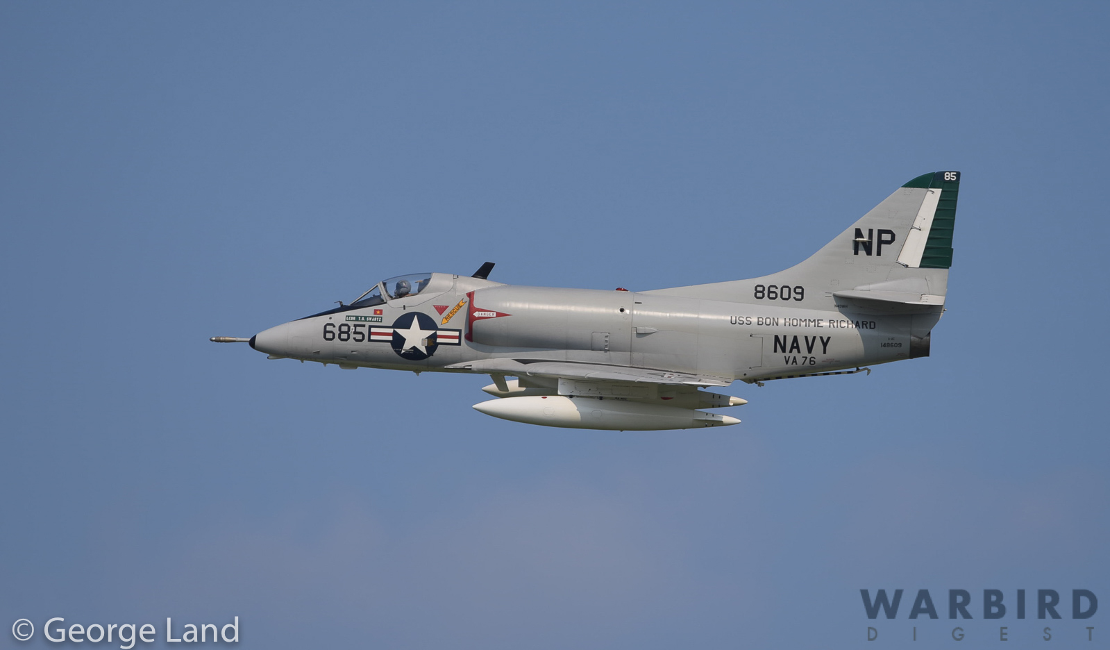 The Warbird Heritage Foundation’s Douglas A-4B Skyhawk Bu. 142112 painted up to represent A-4C Bu.148609 in the colors of VA 76 while aboard the carrier USS Bon Homme Richard. (photo by George Land)