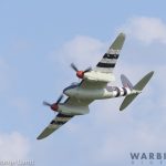 Tom Reilly’s XP-82 coming in to land after her air show performance at EAA AirVenture Oshkosh in the late afternoon of July 24th, 2019. (photo by George Land)
