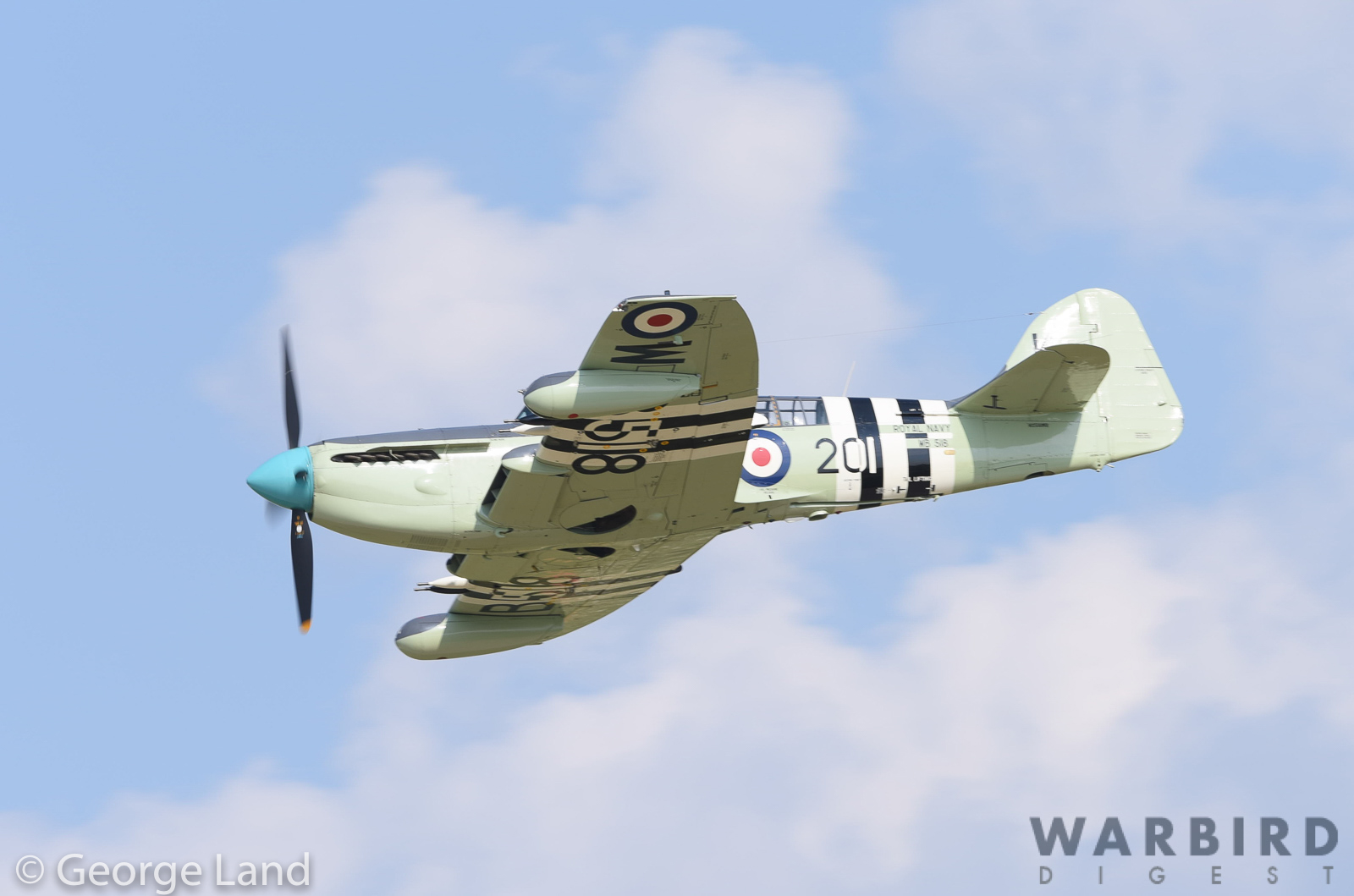 Eddie Kurdziel’s magnificent former Royal Australian Navy Fairey Firefly AS.6 WD828. She is painted to represent Firefly AS.5 WB518, and aircraft which still exists, although in static condition atop a pole in Grffith, New South Wales, Australia. (photo by George Land)