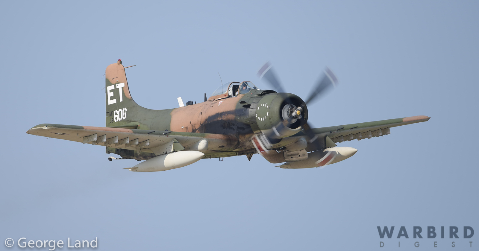 A Heritage Flight with the Cavanaugh Flight Museum’s AD-6 Skyraider and the USAF A-10C from Davis-Monthan AFB. While it is hard to see in this image, the A-10 has a plethora of mission markings on its cockpit side. (photo by George Land)
