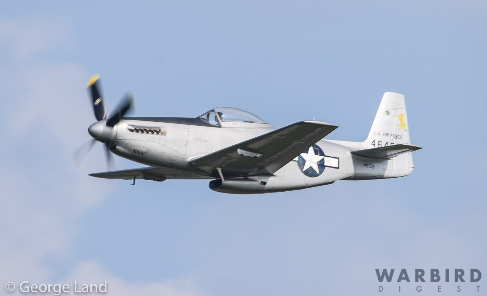 One of several P-51 Mustangs owned and operated by the Commemorative Air Force. This is 44-73264, which amazingly served int he U.S. Air Force until 1957. (photo by George Land)
