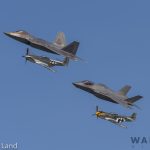 Heritage Flight with an F-22, F-35 and a brace of P-51s. (photo by George Land)