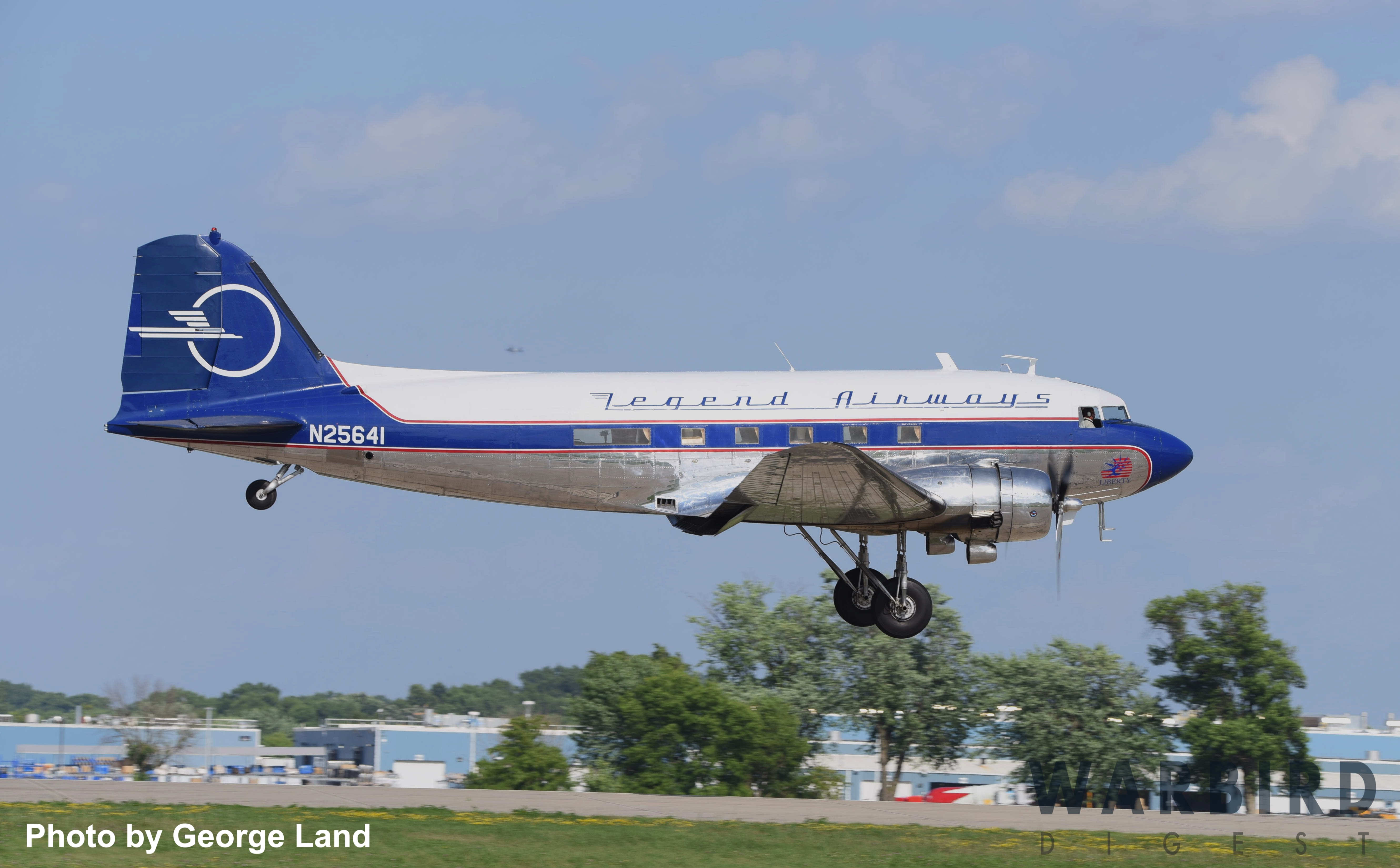 Canadian Warplane Heritage Museum’s D-Day veteran Douglas Dakota FZ692 on takeoff at EAA AirVenture Oshkosh 2019. (photo by George Land)