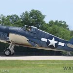 Wings of the North’s Chance-Vought F4U-4 Corsair Bu.97388 tucking up her gear after take off. (photo by George Land)