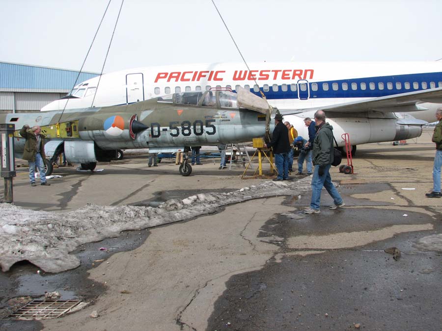 We’ve been closely following the progress of the Alberta Aviation Museum’s newest acquisition, an F-104 Starfighter from The Netherlands, from the announcement of shipment, to its arrival, to the latest news, the un-crating and crane operations that have the plane once again standing, free of encumbrances or external support at its new home in Canada.