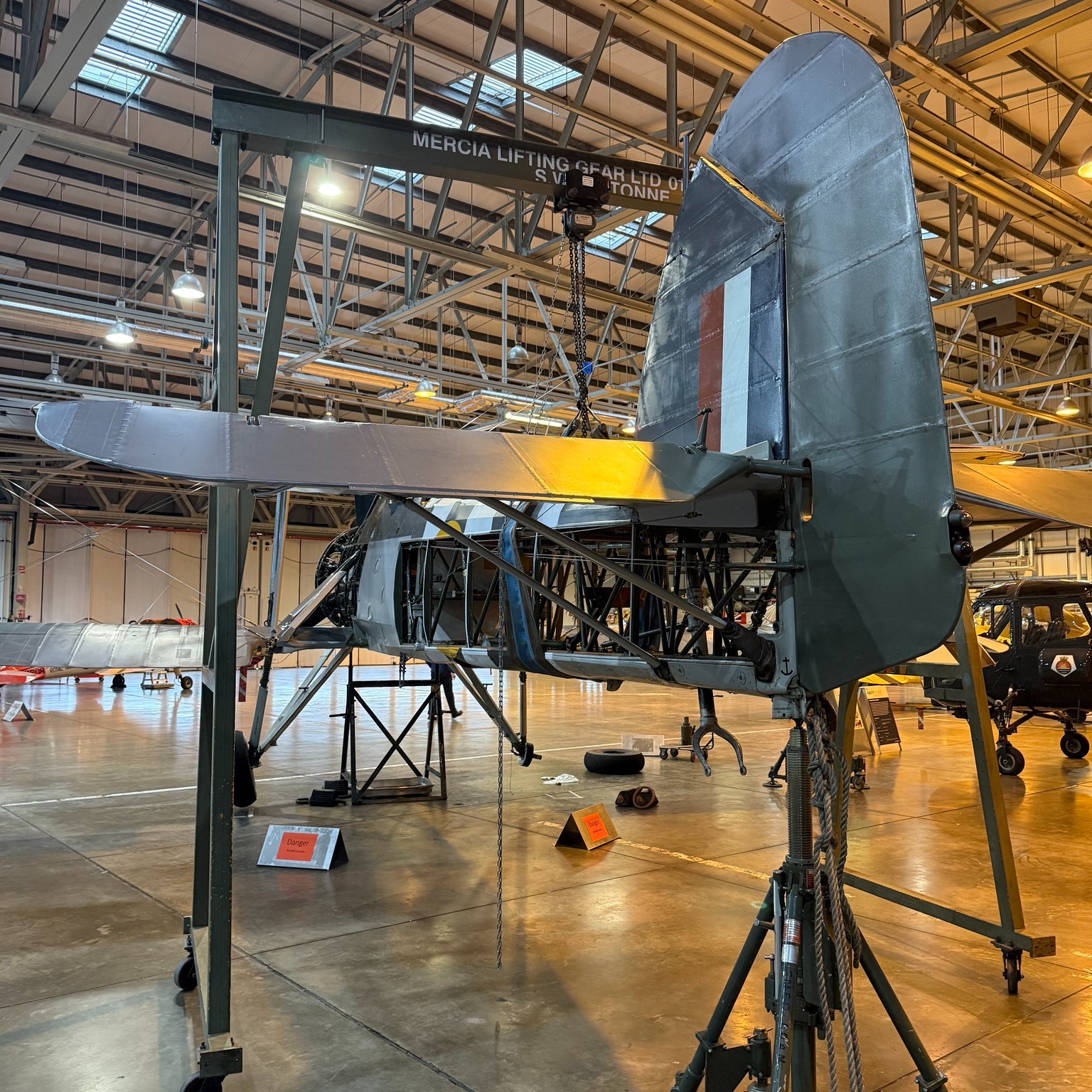 W5856 has a rich and storied history. First taken to the skies on Trafalgar Day, 21 October 1941, she was one of the “Blackfish” Swordfish models built by Blackburn Aircraft at Sherburn-in-Elmet. Delivered to 82 MU in Lichfield on 20 October 1941, she was transported to Gibraltar to serve with the Royal Navy’s Mediterranean Fleet. While little is documented about her active service, she is believed to have conducted patrols over the Straits of Gibraltar from North Front. In the winter of 1942-43, W5856 returned to Fairey’s Stockport factory for refurbishment and was subsequently used for advanced training and trials. By 1944, she had been transferred to the Royal Canadian Navy, where she continued her training role before being stored after World War II. Post-war, the Swordfish passed into civilian hands, including an ambitious farmer who intended to convert her into a crop sprayer. Eventually, Sir William Roberts acquired her and transported her to Scotland in 1977 to join his Strathallan Collection. The aircraft arrived in poor condition, suffering from significant corrosion.