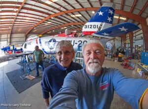 Steve Hinton’s Fighter Rebuilders aircraft restoration workshop is set to restore North American F-86F Sabre 52-4959. This Sabre has dazzled air show crowds for many years adorned in the iconic livery of the Skyblazers aerial demonstration team, forerunner of the present-day USAF Thunderbirds. A new owner based on the west coast acquired the jet about six month’s ago and chose Hinton’s shop to refurbish the airframe. We received a few images of the aircraft undergoing disassembly from Larry Titchenal, who volunteers with the Valiant Air Command Warbird Museum at Space Coast Regional Airport in Titusville, Florida. Steve Hinton and his son, Steve Hinton jr carried out the work with other team members. The vintage fighter will make the journey to Chino, California by road in a few days.