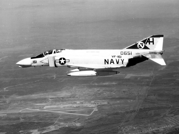 Forty-one years ago today, an Navy F-4B Phantom II from the “Chargers” of Fighter Squadron ONE SIX ONE (VF-161) scored the 197th and final US air-to-air victory of the Vietnam War. While operating from the USS Midway (CVA-41), “Rock River 102” crewed by Lieutenant Victor Kovaleski and Lieutenant (junior grade) James Wise downed an MiG-17 with an AIM-9 Sidewinder. The “Chargers” of VF-161 recorded five MiG kills while deployed aboard the USS Midway during the Vietnam War. The Phantom entered service with the U.S Navy on 30 December 1960 with the VF-121 Pacemakers at NAS Miramar. The VF-74 Be-devilers at NAS Oceana became the first deployable Phantom squadron when it received its F4H-1s (F-4Bs) on 8 July 1961 . In 1984, the F-4Ns had been retired, and by 1987 the last F-4Ss were retired in the US Navy deployable squadrons. On 25 March 1986, an F-4S belonging to the VF-151 “Vigilantes,” became the last active duty U.S. Navy Phantom to launch from an aircraft carrier, in this case, the USS Midway. On 18 October 1986, an F-4S from the VF-202 “Superheats”, a Naval Reserve fighter squadron, made the last-ever Phantom carrier landing while operating aboard USS America. In 1987, the last of the Naval Reserve-operated F-4S aircraft were replaced by F-14As (Source Naval Aviation News, September–October 2004)