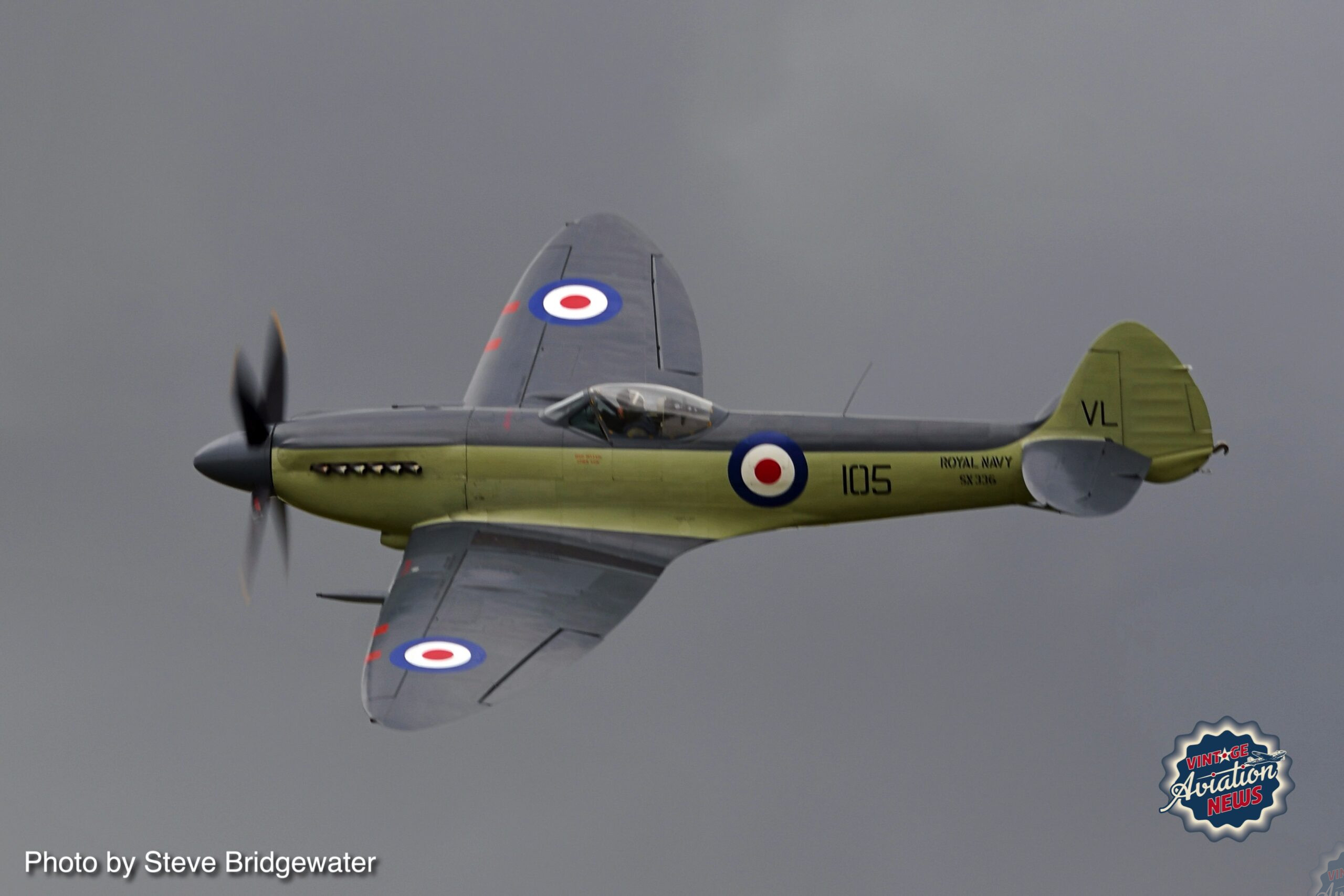 Built for the Navy as SX336, this aircraft’s battered remains were salvaged from a scrapyard in 1973. After passing through various owners, former US Navy P-3 Orion pilot, Tim Manna, acquired the airframe and undertook the arduous and expensive task of restoring her to fly. Earlier this year, Manna sold the magnificent fighter to Navy Wings which, funded by a sizable donation, also allowed the acquisition of a spare Rolls Royce Griffon Mk.VI engine critical to the Seafire’s long-term sustainability. During the Shuttleworth Collection’s Fly Navy event, SX336 was flown by serving Royal Navy pilot Chris ‘Goaty’ Gotke and was displayed in formation with the collection’s resident Supermarine Spitfire and Hawker Sea Hurricane.