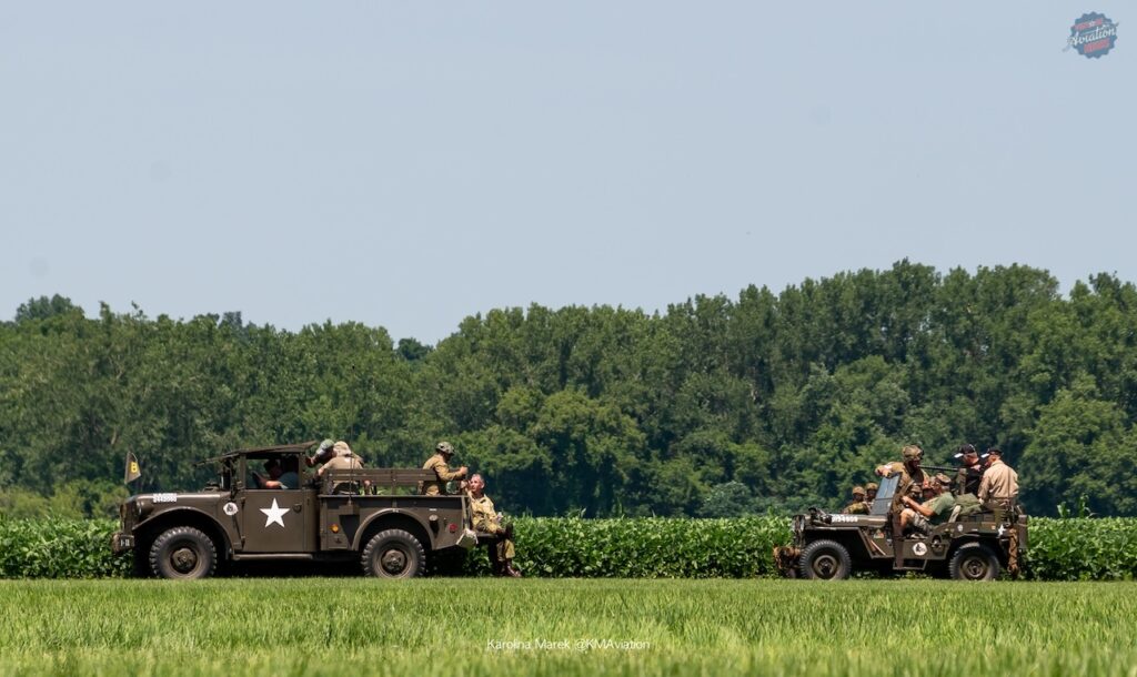 While the C-47s dropped the jumpers, a reenactment ground battle took place at the show center. Reenactors were dressed in both American and German period correct uniforms and put on a touching display that put into perspective what soldiers faced in Normandy. Seeing jumpers jump from one C-47 is a spectacular sight, but having two C-47s was the cherry on top to the display and made the reenactment feel even more real. This was a great tribute to the D-Day 80 celebrations of this summer.