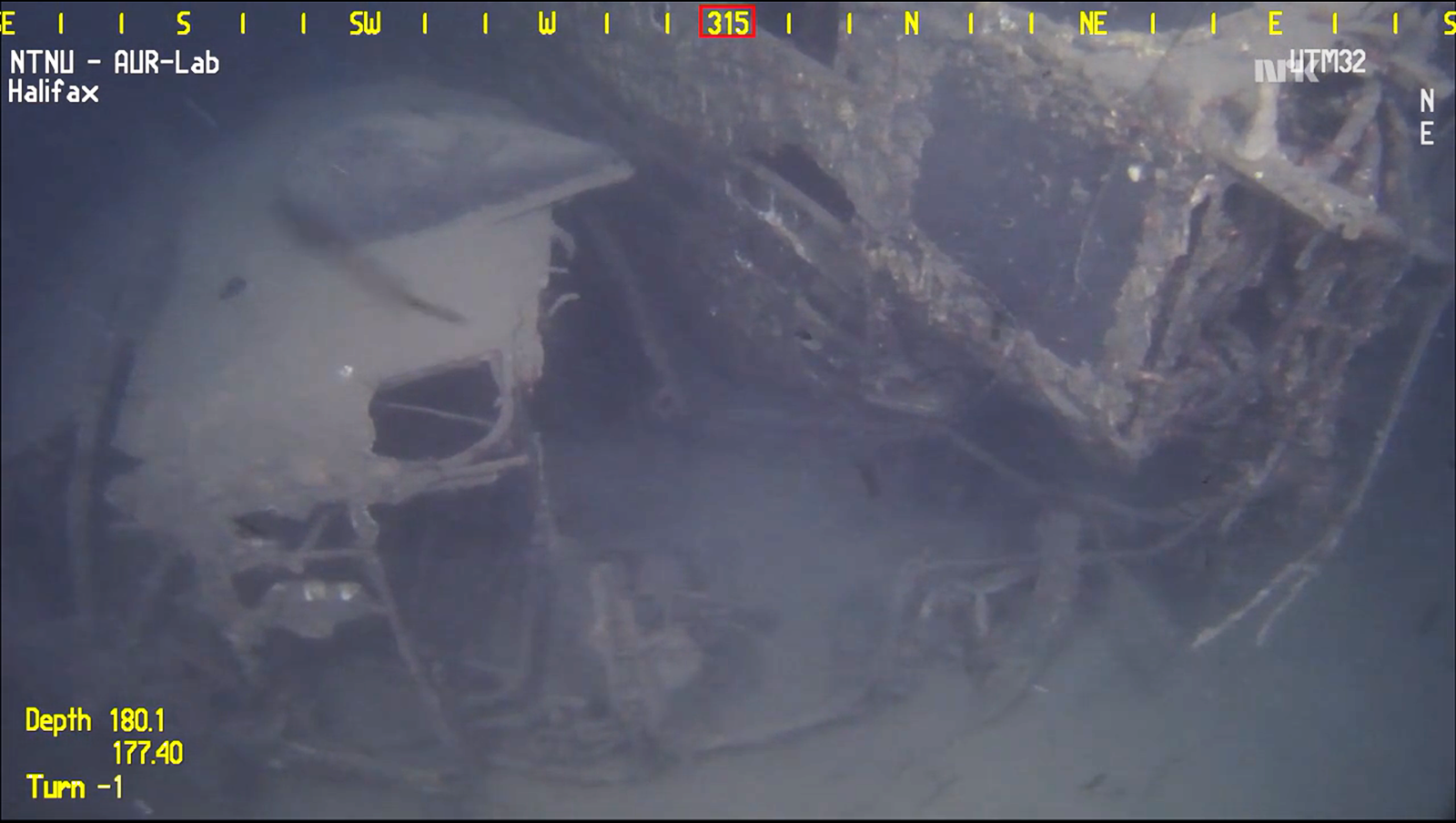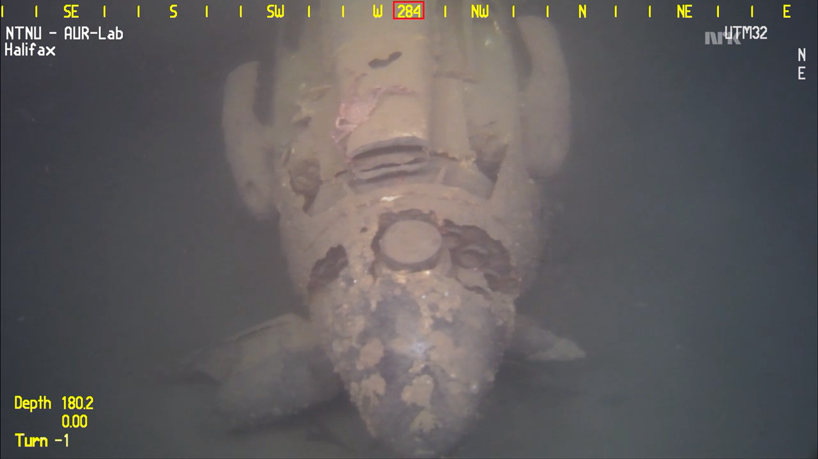 A research team from the Marine Technology Center at the Norwegian University of Science and Technology in Trondheim, Norway has discovered the sunken wreck of an RAF Handley Page Halifax under roughly 180m of water on the bottom of a nearby fjord. Six engineering students were involved in the project, which involved studying historical details and a great deal of planning from how to conduct the search. As with almost all undersea search projects, there is usually a lot of failure before a successful conclusion. When the students guided their small remote submersible down to the wreck, they let out a huge cheer when she appeared in view. They have conducted a thorough survey of the remains, which they captured on video.