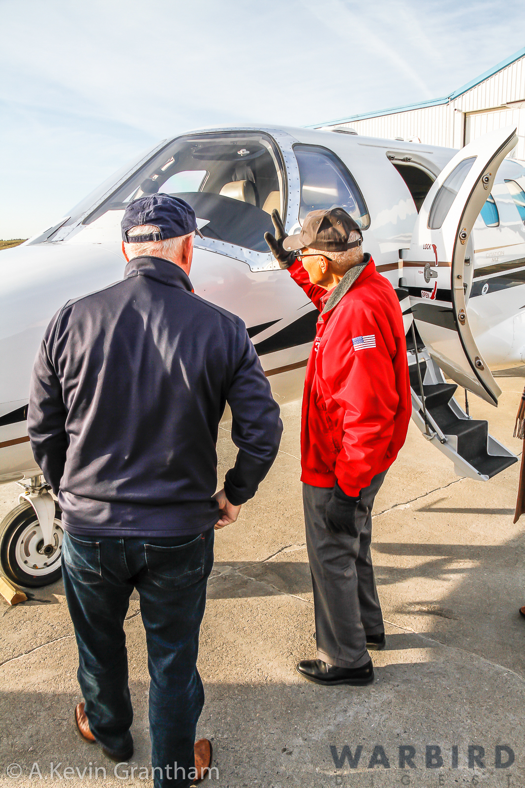 The Allied Airmen’s Preservation Society also greeted Colenol McGee, saluting this American hero as he arrived at the NCAA on December 7. And then Col McGee closed out the two-day celebration by flying a Cessna Citation M2 business jet with AOPA’s president, Mark Baker.