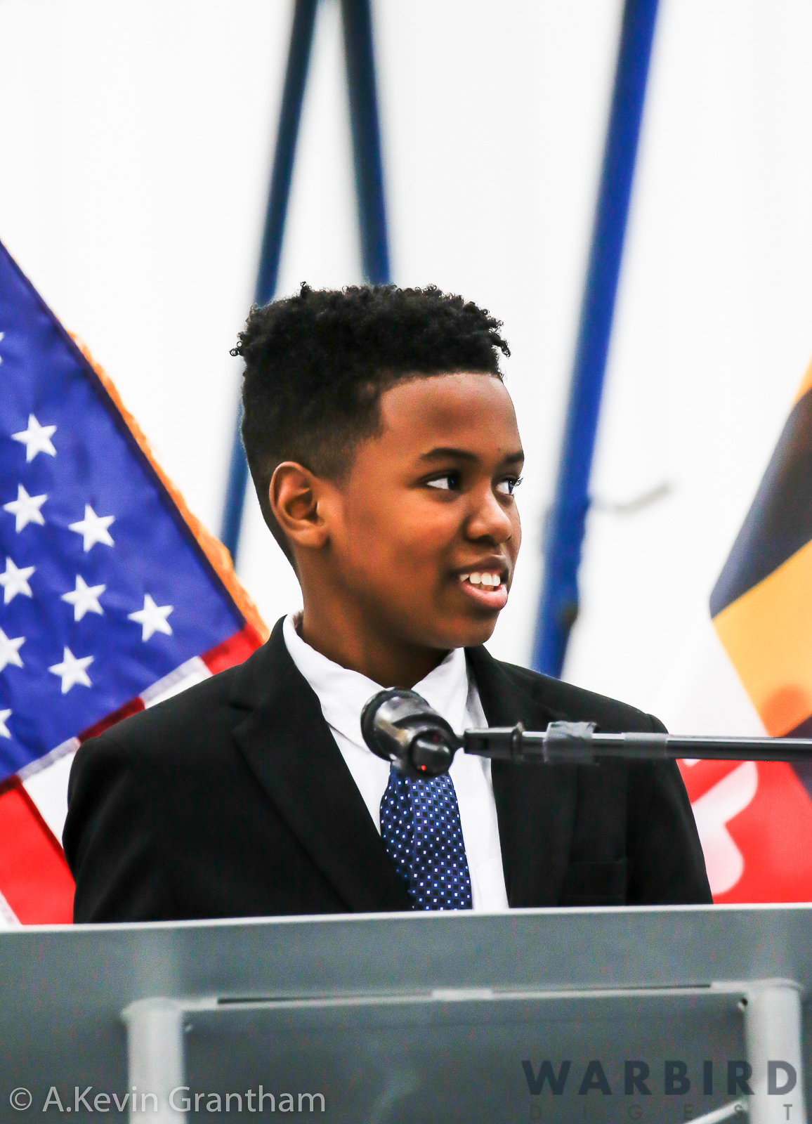 Festivities began a day early, with a reception, hosted by the Aircraft Owners and Pilots Association (AOPA) at their National Aviation Community Center (NACC) located at Frederick’s Municipal Airport. At 0900 hours, Andrew McKenna took off in his highly polished P-51D Mustang and buzzed the field a couple of times to open the centennial celebration. Colonel McGee then followed by piloting a Cirrus Vision SF50 business jet to Dover Air Force Base to attend a special birthday reception before returning to Frederick for the legacy luncheon. After lunch, officials from the United States Congress, Federal Aviation Administration, Maryland Governor’s Office, AOPA, National Air & Space Museum, General Aviation and Manufacturers Association, as well as others, presented Colonel McGee with greetings and appreciation for not only his 100 years of life, but also for his long service to the United States of America and his community. Perhaps the most moving tribute came from Joshua Gibson, a sixth-grade student from Julius West Middle School in Rockville, Maryland.