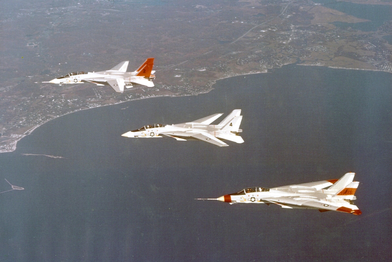 Hi there , In reference to your top photo showing from top down #2, #4 and #1 I can tell you that the top ship is #2, 157981, #4, 157983, and #1 which is actually called 1X , 157991. “1X” was the twelfth F-14 prototype that was pulled from the line to replace the original #1 lost on 12-30-1970 in order to complete the high speed test program. 1X first flew in August of 1971 and resumed the duties of the original #1 and reached a speed of Mach 2.3.04. #2 was the low speed /spin ship and #4 was the weapons system test airplane. Hope this helps. Tim Lent, former Grumman Aerospace Corp F-14 Plane Captain.