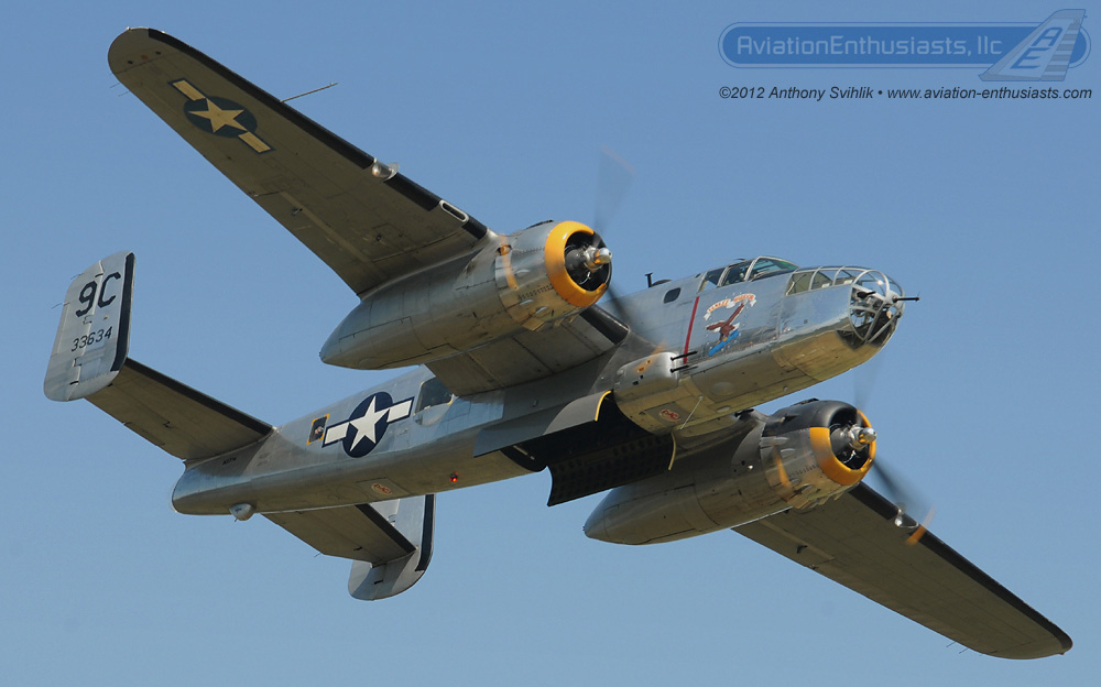 Here is a photo of the Yankee Air Museum’s B-25D Mitchell “Yankee Warrior” at the 2012 Gathering of Eagles XVI Air Show.