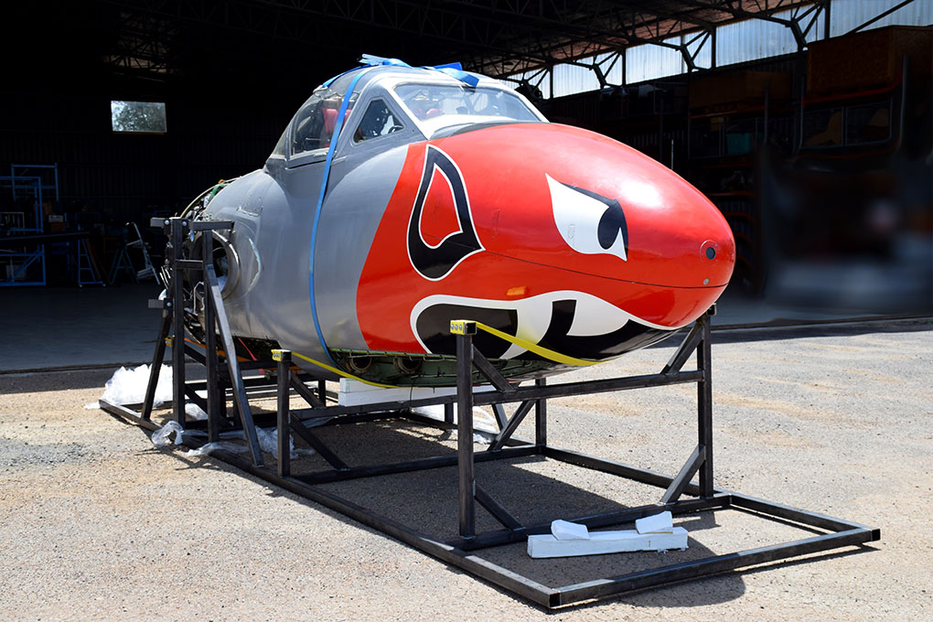 In 2023, the Vampire was placed on the market in Rockford, Illinois, USA, where it caught the attention of renowned Australian display pilot and Warbird operator Paul Bennet of Paul Bennet Airshows in the Hunter Valley, NSW. After successful negotiations, the jet was dismantled and shipped to Australia, finally arriving in early 2025. Now fully assembled at Scone, the Vampire is undergoing Australian certification ahead of its imminent first flight. Once cleared, Paul Bennet is set to fly the jet extensively at airshows across Australia, where it will stand out as his first jet-powered aircraft, joining an impressive lineup that includes a Wirraway, Corsair, TBM Avenger, Sea Fury FB.11, and T-28 Trojan. The aircraft now features a Garmin-equipped instrument panel, fresh wiring, and drop tanks, making it a highly capable and spectacular performer. When not flying, the aircraft will join the aircraft display of Hunter Fighter Collection’s (HFC) stable of historic aircraft, on loan to the Hunter Warbirds Museum at Scone. (See Vintage Aviation News’ previous articles about the Hunter Fighter Collection HERE.)
