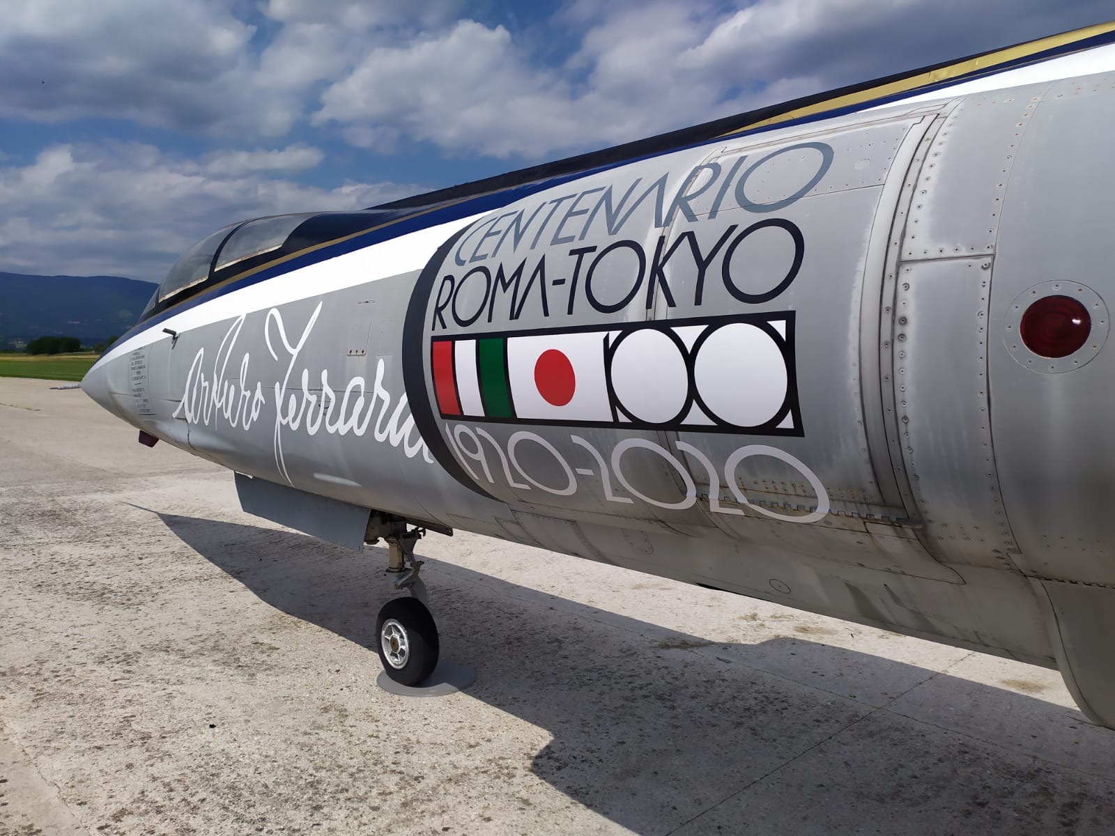 As we reported, May 31st, 2020 marked the centenary for the successful conclusion of Arturo Ferrarin and Guido Masiero’s epic 19,000 km Rome-to-Tokyo long distance flight. As we noted in our earlier story, only two of the initial eleven aircrews made it all the way from Italy to Japan, arriving in Tokyo within an hour of each on May 31st, 1920. As the first pilot to fly from Europe to Japan, Ferrarin has been honored in a number of ways over the years. Italy’s flag carrier, Alitalia, christened their second Boeing 747 airliner as Arturo Ferrarin in 1970 on the feat’s golden anniversary (their first 747 being named after Neil Armstrong). Now, as part of their centenary celebrations, the Italian Air Force has applied a commemorative scheme to five of their SIAI S.208 trainers, each of them sporting tail markings picturing Arturo Ferrarin’s face, his signature and a 100th anniversary logo. But the airport in Thiene, Italy, aptly named in Ferrarin’s honor, has gone one better with a repaint of their locally-based static-display F-104 Starfighter…