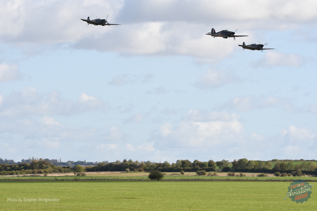 For the 50th anniversary airshow, the former TFC Hurricane XII G-HURI (which has been operated from Duxford by the Historic Aircraft Collection since 1999) flew alongside two newly recreated Hurricane Is. Fighter Aviation Engineering’s P2902 returned to the air for its second slot of the day, this time joined by the Hurricane 501 syndicate’s V7497 (G-HRLI).