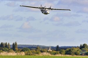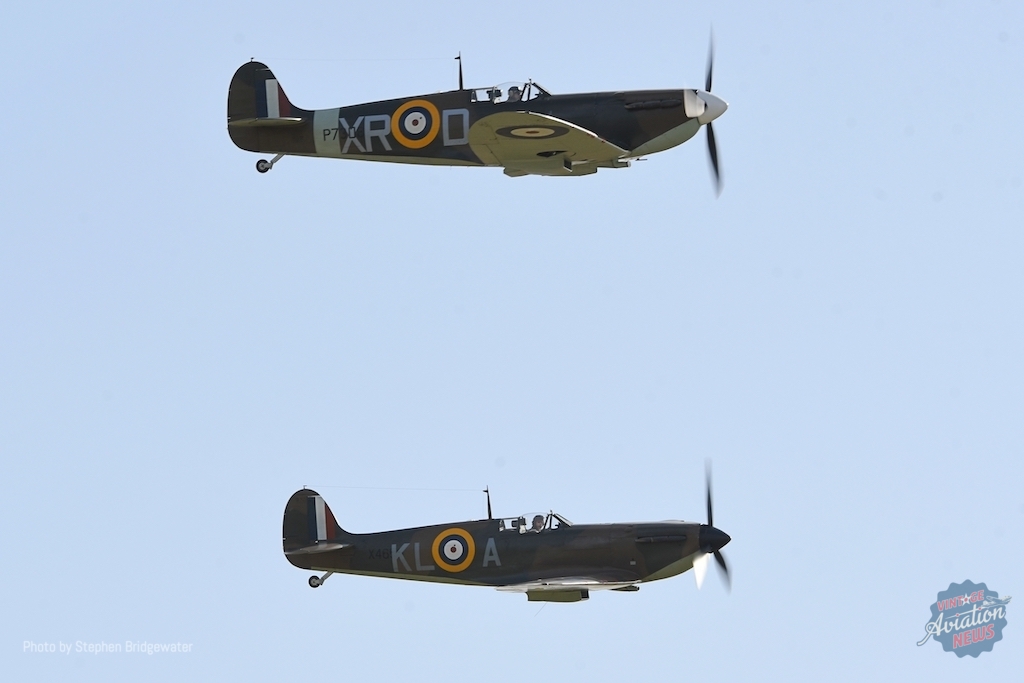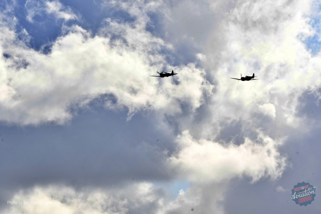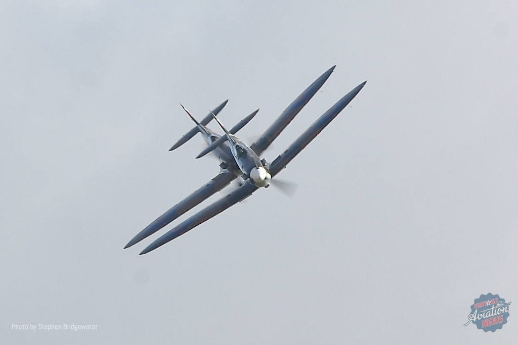 Another Spitfire followed it into the skies in the shape of Rolls-Royce’s PR.XIX PS853 (G-RRGN). Visiting from East Midlands Airport, the former BBMF-owned airframe was a suitable nod to the BBMF’s varied appearances at Duxford over the decades – and on this occasion was flown by former BBMF Officer Commander Sqn Ldr Mark ‘Disco’ Discombe MBE.