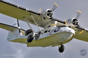 Another airshow favourite followed in the shape of Plane Sailing’s Consolidated PBY-5A Catalina G-PBYA (actually a Canadian Vickers Canso). Plane Sailing first moved to Duxford in 1985 with its first Catalina (G-BLSC) and G-PBYA has been resident at the IWM’s airfield since 2004. The inclusion of long-term Duxford residents such as this was an important nod to the past, although it was sad that the Old Flying Machine Company’s Spitfire IX MH434 (G-ASJV) and B-17 Preservation’s B-17G Sally B were notably absent from the celebrations – the latter having started its winter maintenance just a week or so before the event.