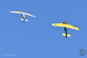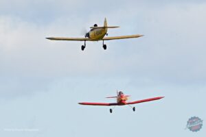 Sadly, the Shuttleworth Collection’s Avro Tutor became unserviceable and was unable to join the celebrations, but the same Miles Magister that had appeared on October 14, 1973, graced the skies on October 14, 2023. Joining it, as a last-minute replacement for the sick Tutor, was a second Magister. Built for the RAF in 1941 as V1075, this aircraft later became G-AKPF and was also at Duxford for that first event, albeit in pieces in the hangar. Owned at the time by the East Anglian Aviation Association, visitors to the show could have their photograph taken in the cockpit. It would be 1991 before Adrian Brook returned ‘Papa Fox’ to the skies and today it is based at Old Warden alongside the Shuttleworth Collection example. Flown by syndicate member Dave Bramwell it flew a coordinated display with G-AJRS flown by Jean-Michel Munn.