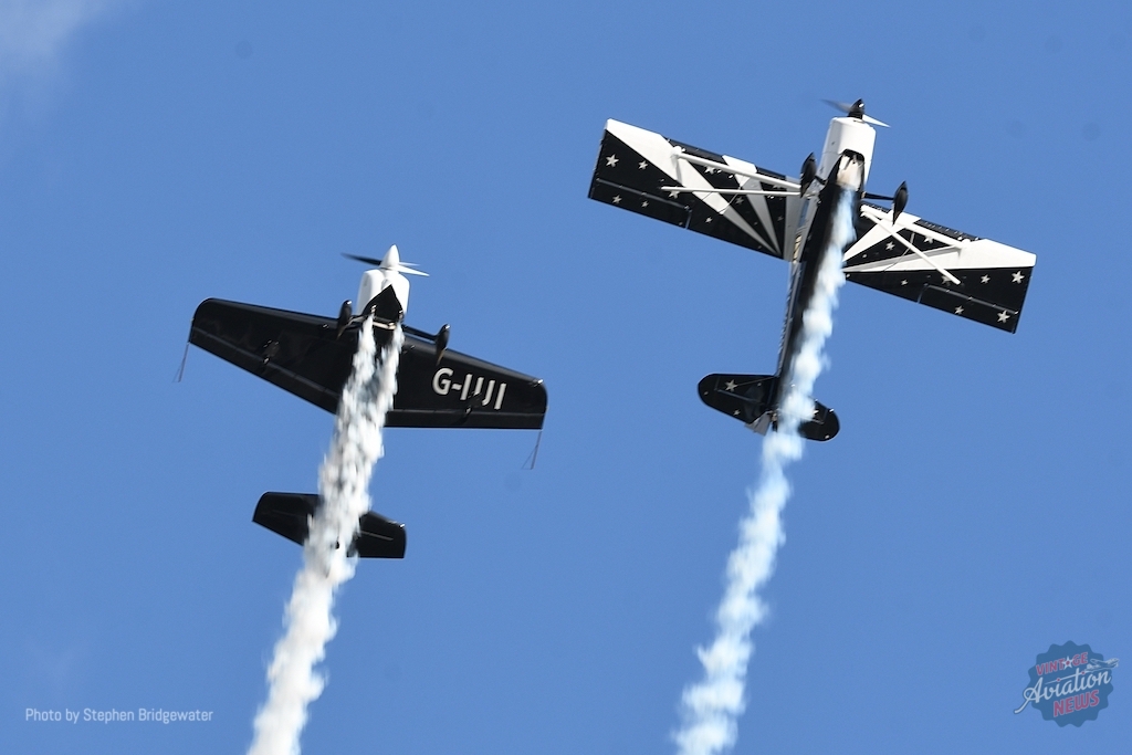 Another new act for 2023 was the Titans Aerobatics Team, with Patrick Wilson and Simon Ansell flying an unusual mixed formation of an American Champion Xtreme Decathlon and an XtremeAir XA42. Having appeared at a couple of events this season this pairing is truly breathtaking and, in the author’s opinion, one of the standout airshow acts in the UK today.