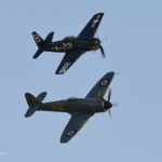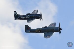 All four of these ‘big piston’ fighters have a long association with Duxford, and while the P-47 and Fury have moved on to new owners, the Bearcat and Corsair remain in the stable of The Fighter Collection (TFC). The latter have been resident at Duxford since 1984 and 1986 respectively and on this occasion, they were flown by Brian Smith and Stu Goldspink – pilots with equally impressive associations with Duxford and the UK warbird world.