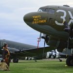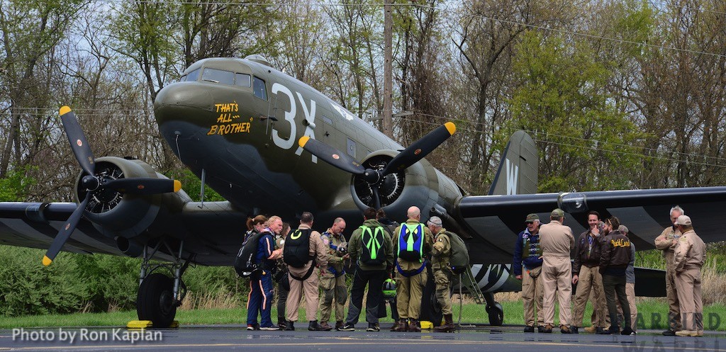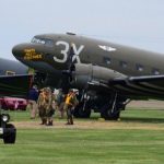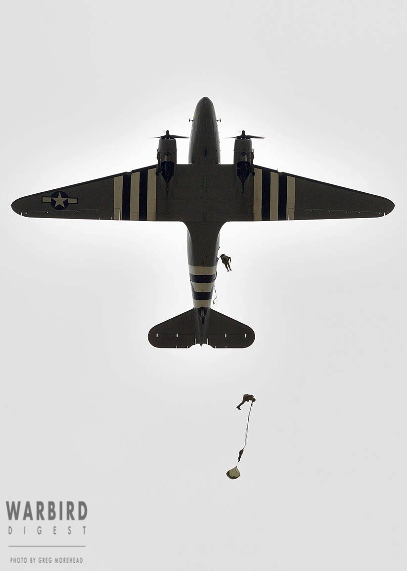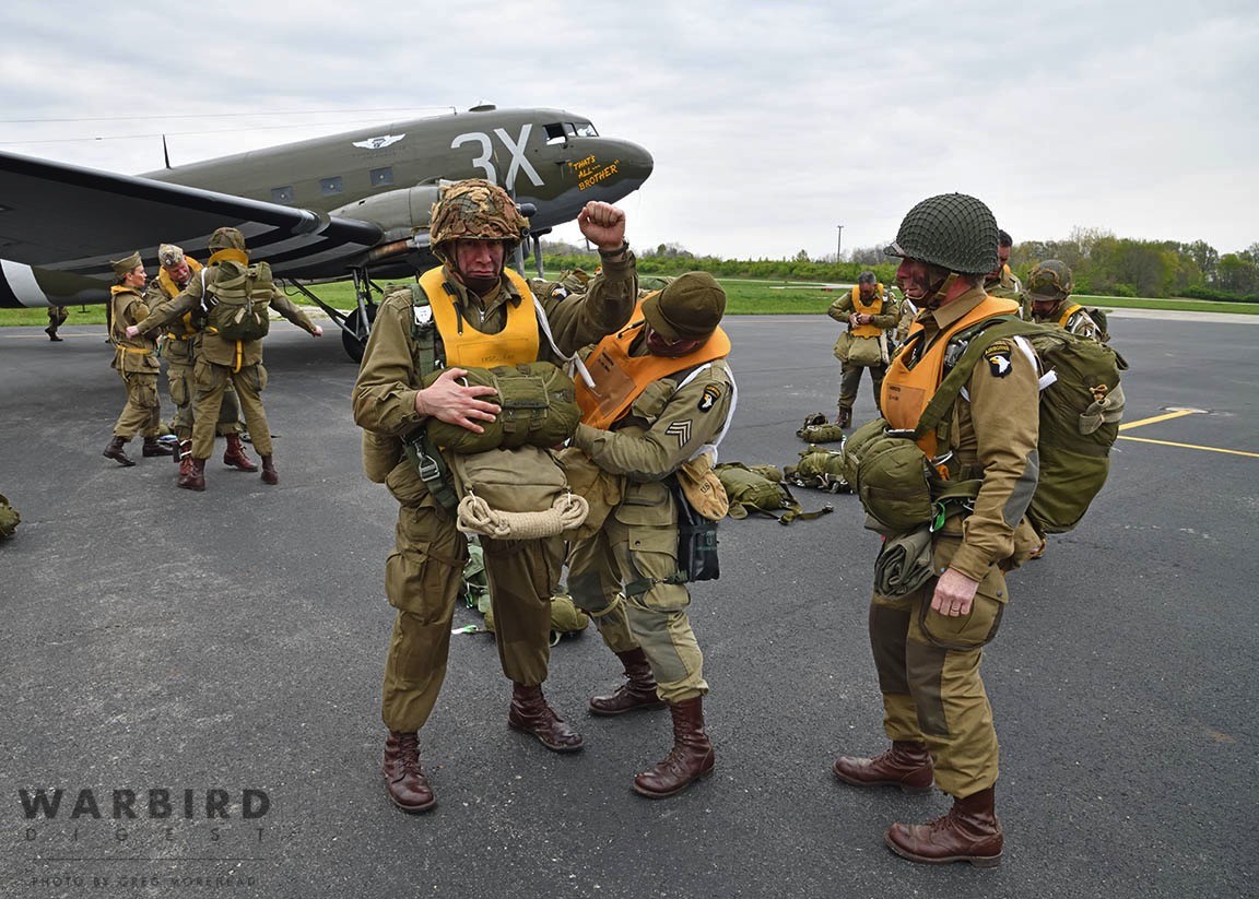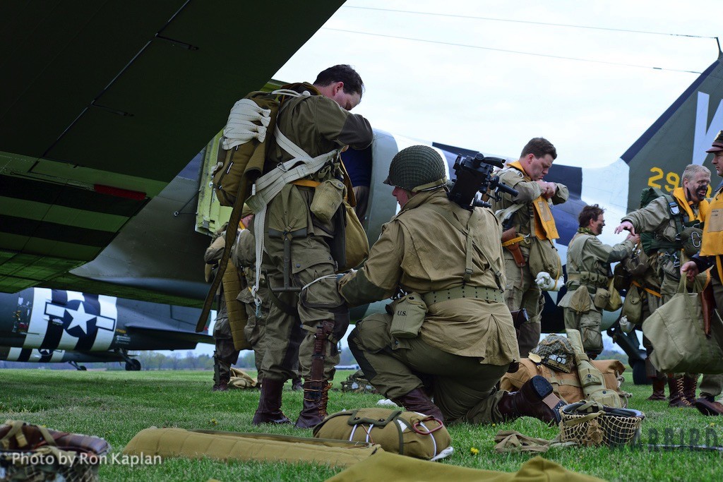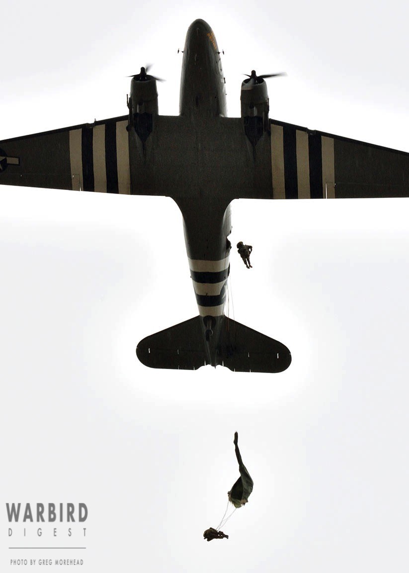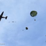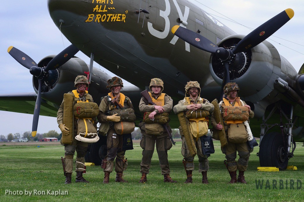 The Commemorative Air Force (CAF), which owns and operated the aircraft used, conducted the flyover and mass parachute drop using three restored and preserved aircraft: C-47 “That’s All Brother,” C-47 “Placid Lassie” of the Tunison Foundation, and C-53 “D-Day Doll.” In addition, tandem parachuting was opened to the public on all three days after the initial drops were completed.