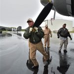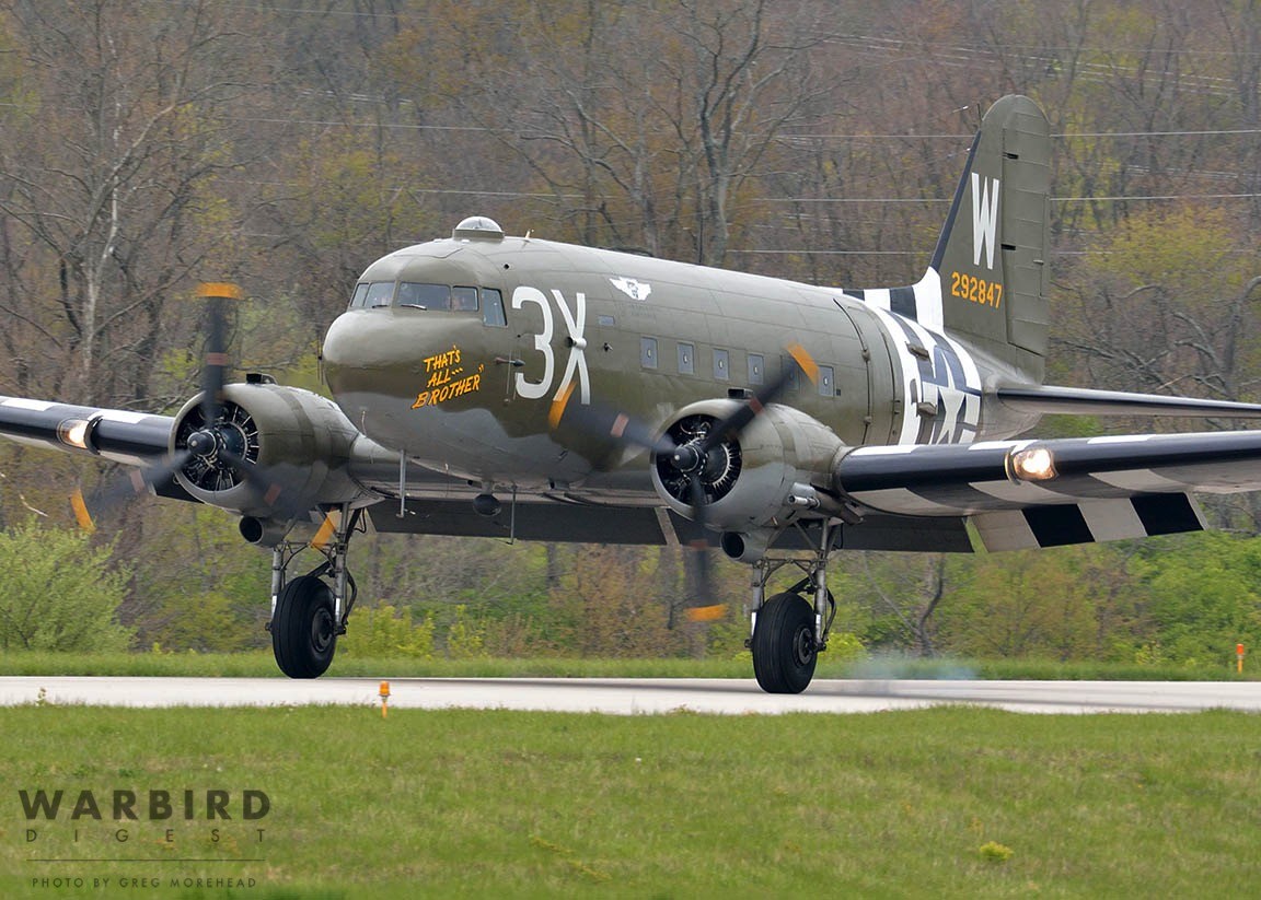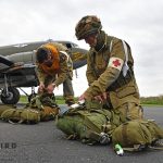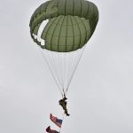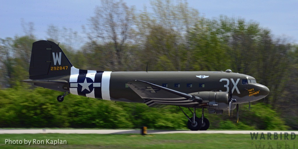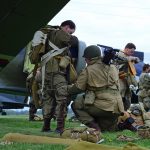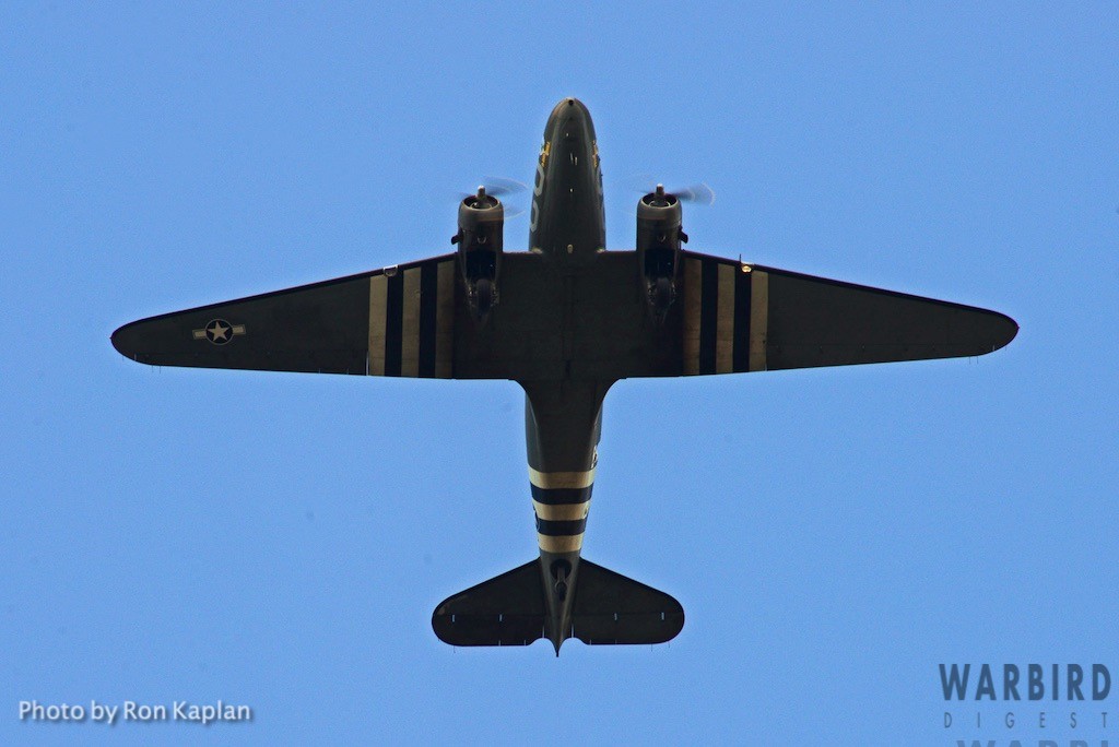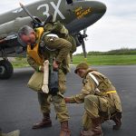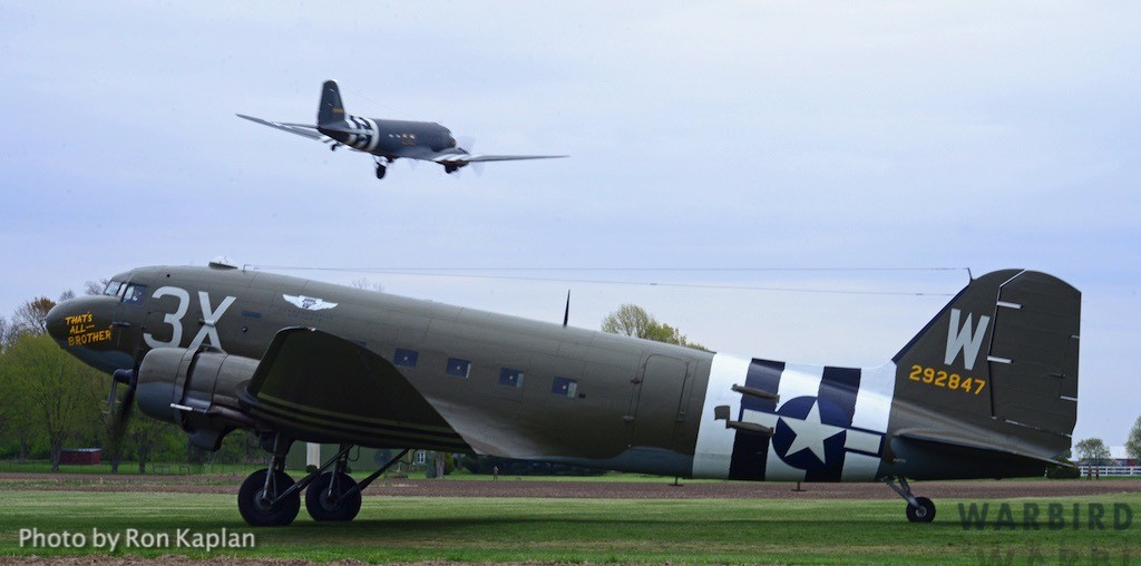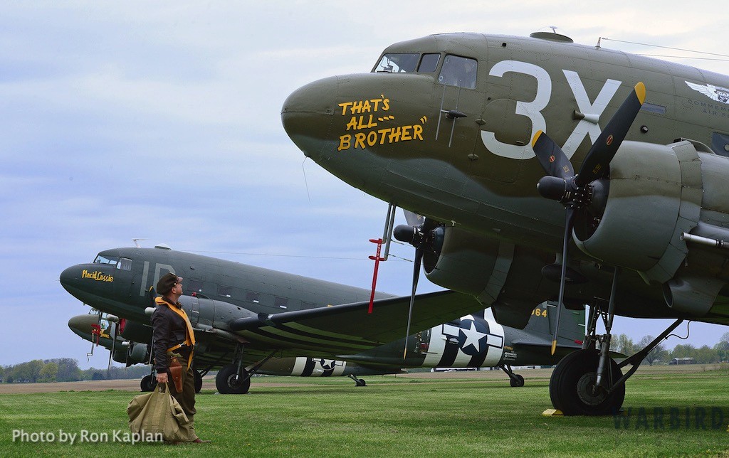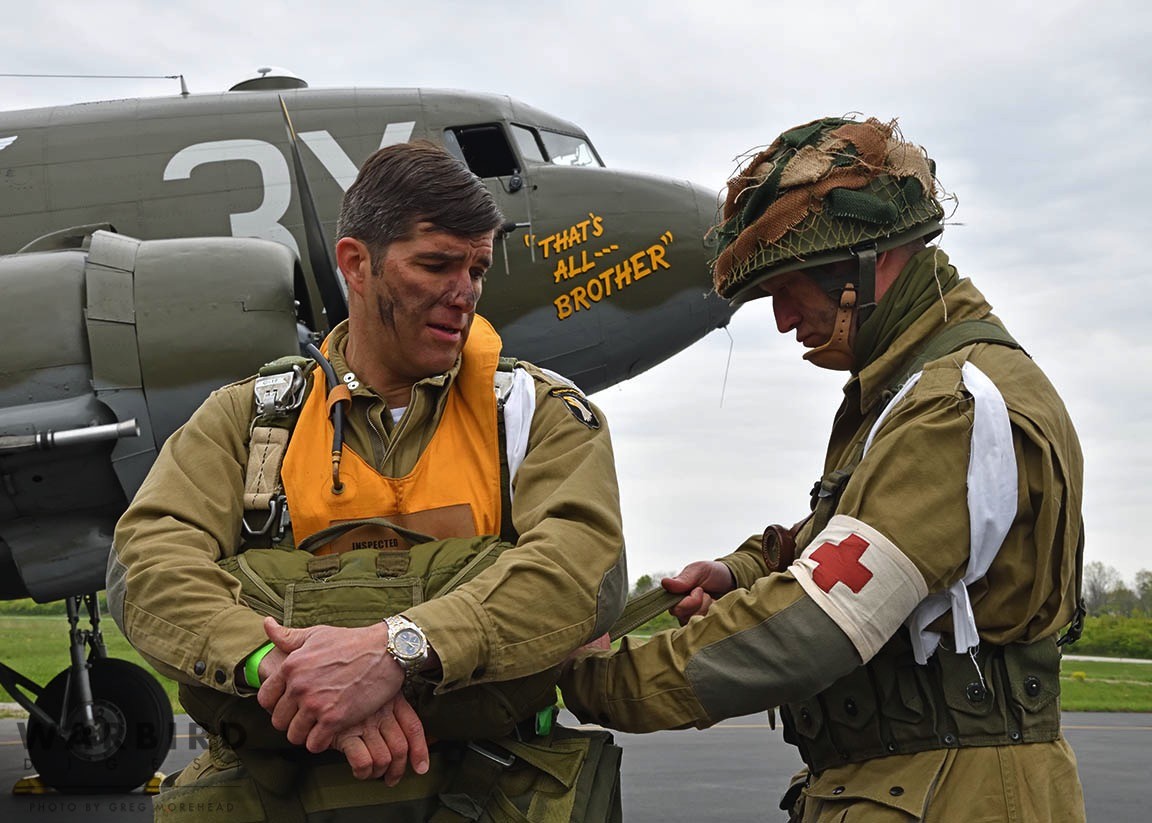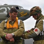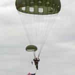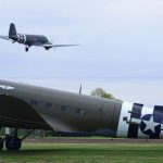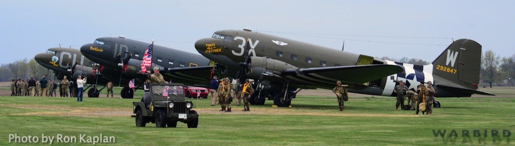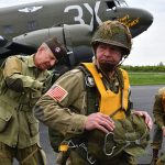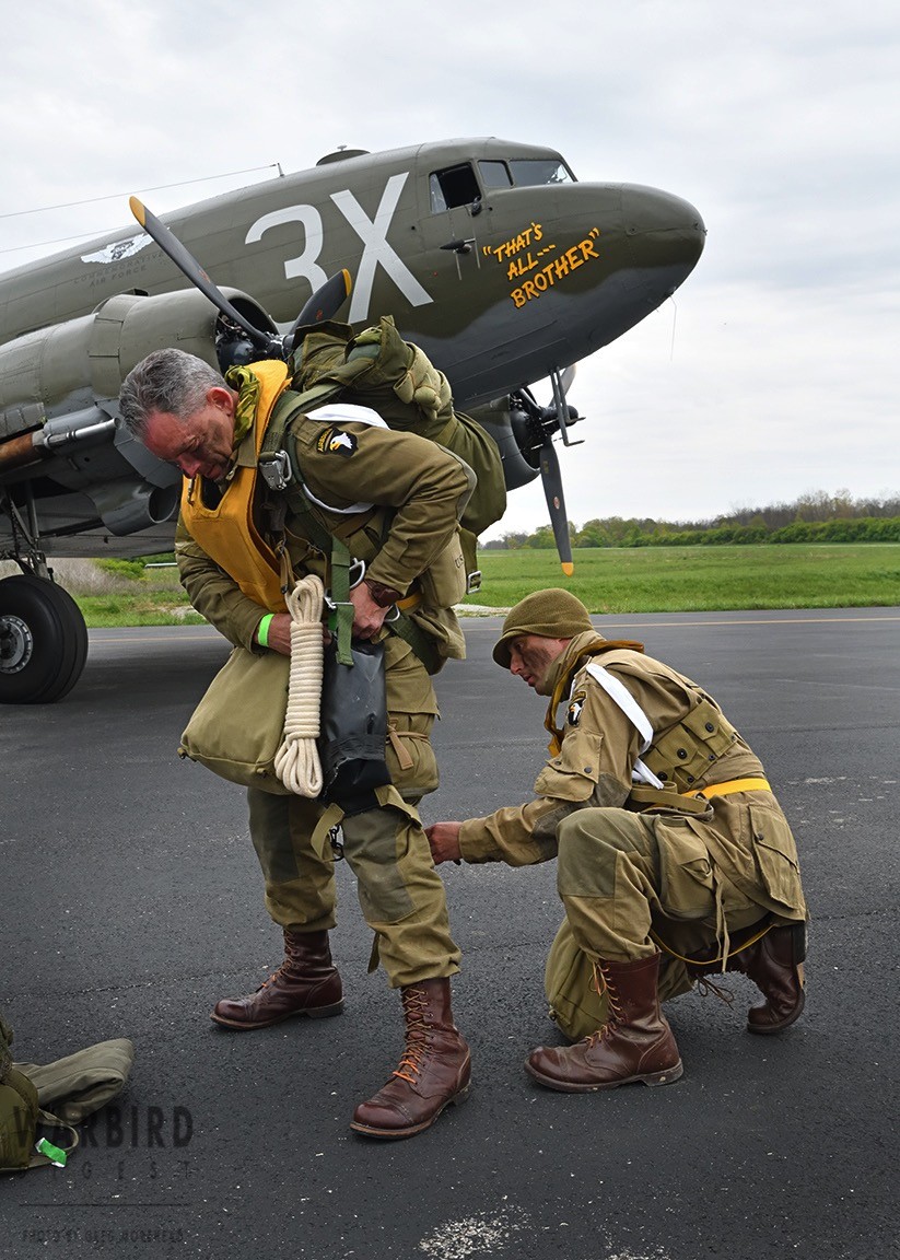 The Commemorative Air Force (CAF), which owns and operated the aircraft used, conducted the flyover and mass parachute drop using three restored and preserved aircraft: C-47 “That’s All Brother,” C-47 “Placid Lassie” of the Tunison Foundation, and C-53 “D-Day Doll.” In addition, tandem parachuting was opened to the public on all three days after the initial drops were completed.