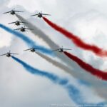 The French Air Force usually demonstrates some new air capacity (paratroops, etc.) as well as overflight by the Patrouille de France Also, Airbus or other aircraft manufacturers flew their latest commercial aircraft, such as the A-300 series of jetliners.