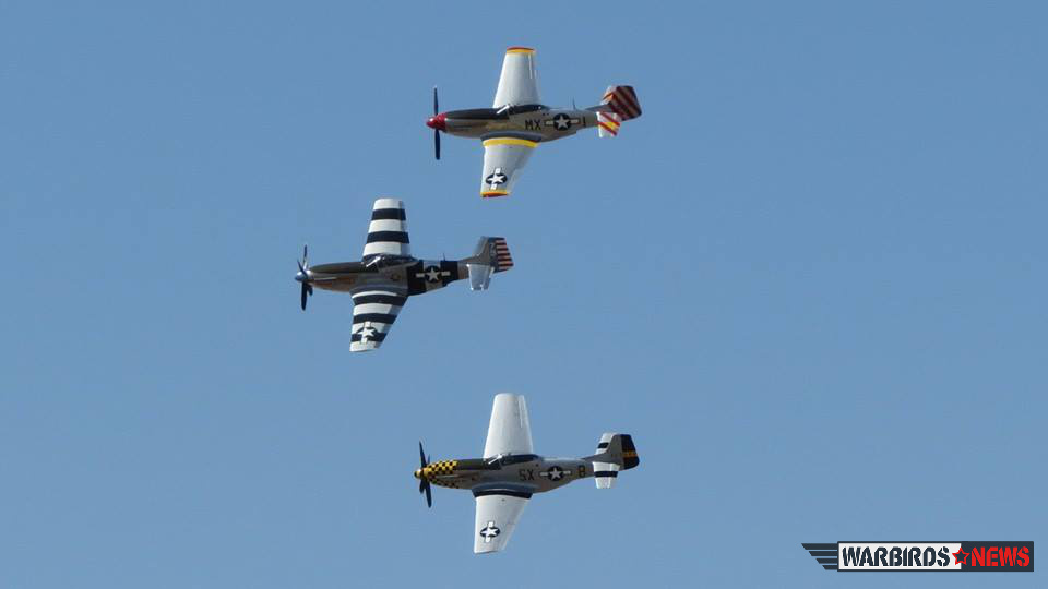 The Bremont Horsemen with Dan Friedkin, Ed Shipley and Steve Hinton flying in perfect formation in their P-51 Mustangs. (photo by Elena DePree)