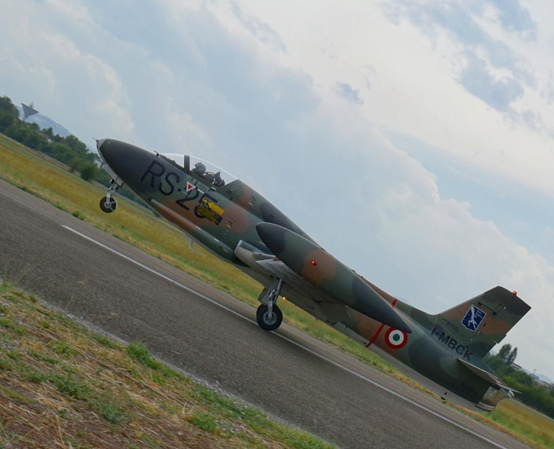 Back in late September 2019, we reported on the then-recent first flight of a 1970s-vintage Aermacchi MB-326KZ military jet trainer. This was an unusual situation in that this specific airframe had never flown before since the original construction contract (for the Zairean military) ended up getting canceled before Aermacchi could complete its manufacture. With the contract’s cancellation, the partially assembled aircraft went into covered storage, with the hopes that another customer would pay for its completion. This never materialized… until the advent of the jet warbird movement in Italy, which saw Renzo Catellani’s Volafenice flying collection purchase and complete the tandem-seat light attack aircraft, powered by a Rolls-Royce (Armstrong Siddeley) Viper Mk.600 turbojet. The red tape surrounding warbird operation in Italy is complex, as one might expect, and the bureaucratic process required that the aircraft’s certification move from experimental (test aircraft) to the standard category. Presently, the airworthiness certificate is not standard but rather a flight permit for a ‘replica’ airplane – since this aircraft never left the original manufacture as a certified, flying aircraft, but rather as a partially completed shell.