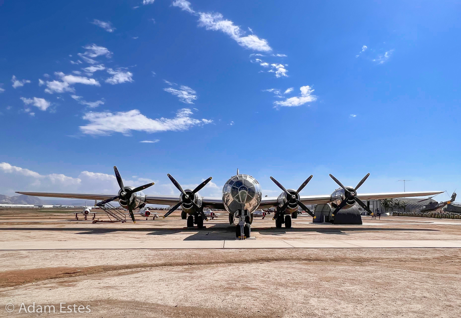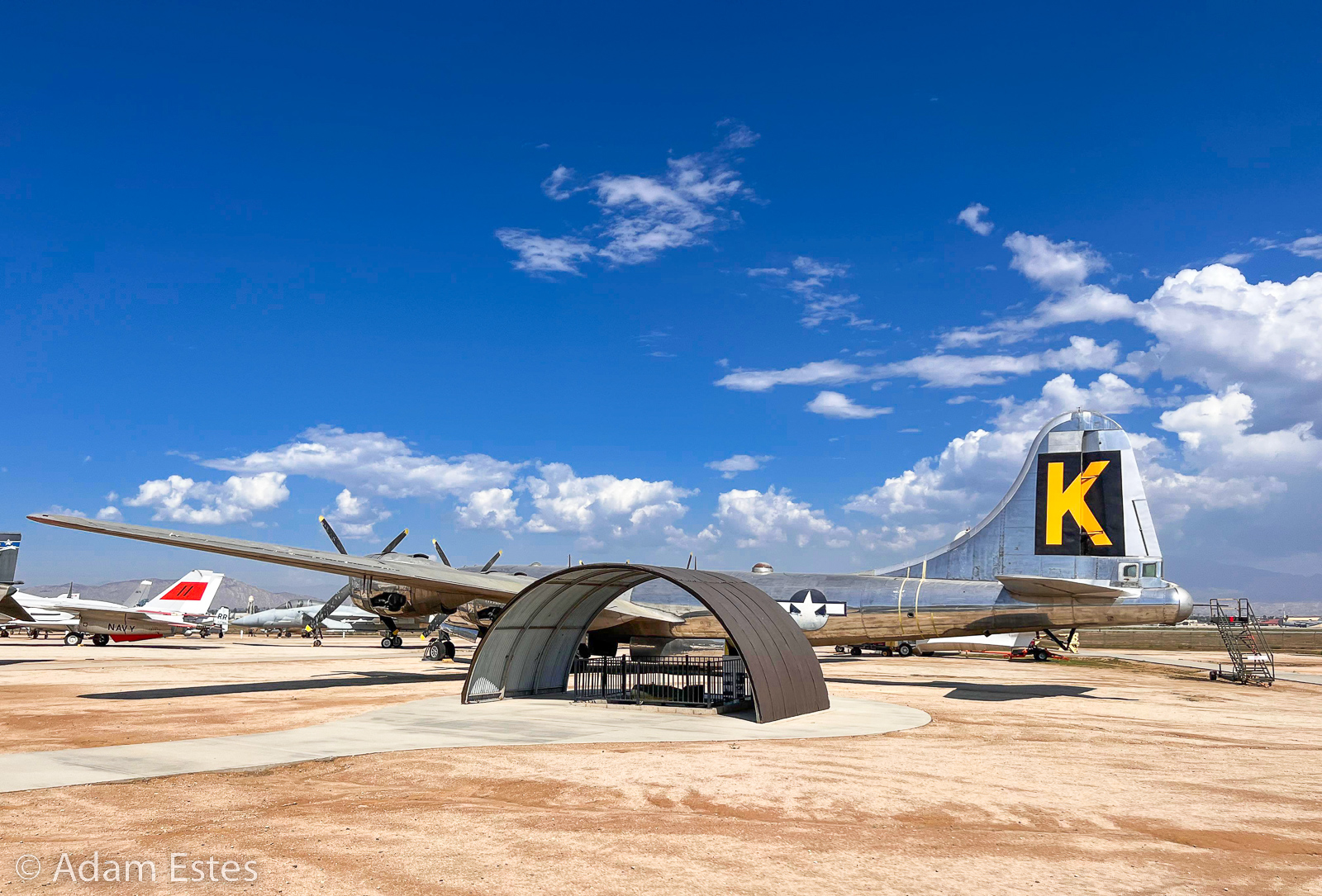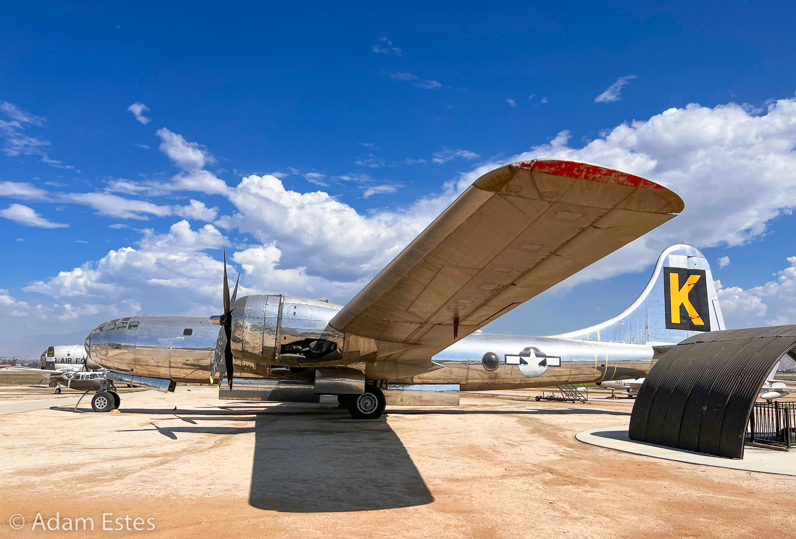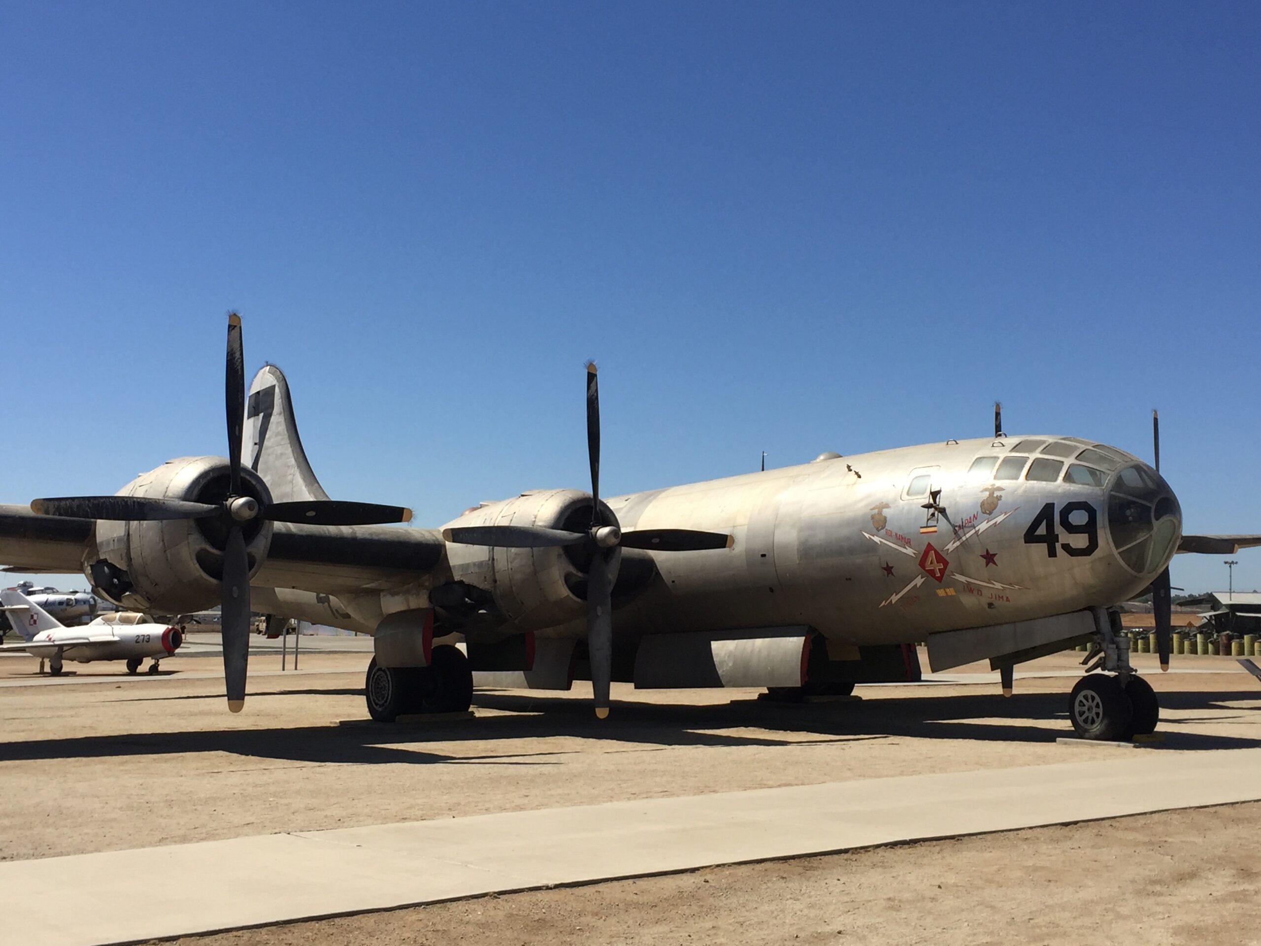 One short story: after I posted the photos, I got an email from a WWII B-29 veterans group. There was a controversy whether the letter in the square was bare metal (unpainted) or yellow. They were very happy to see the yellow letter that settled the issue. I guess black and white photos of the time weren’t able to show the differences between bare metal and yellow.