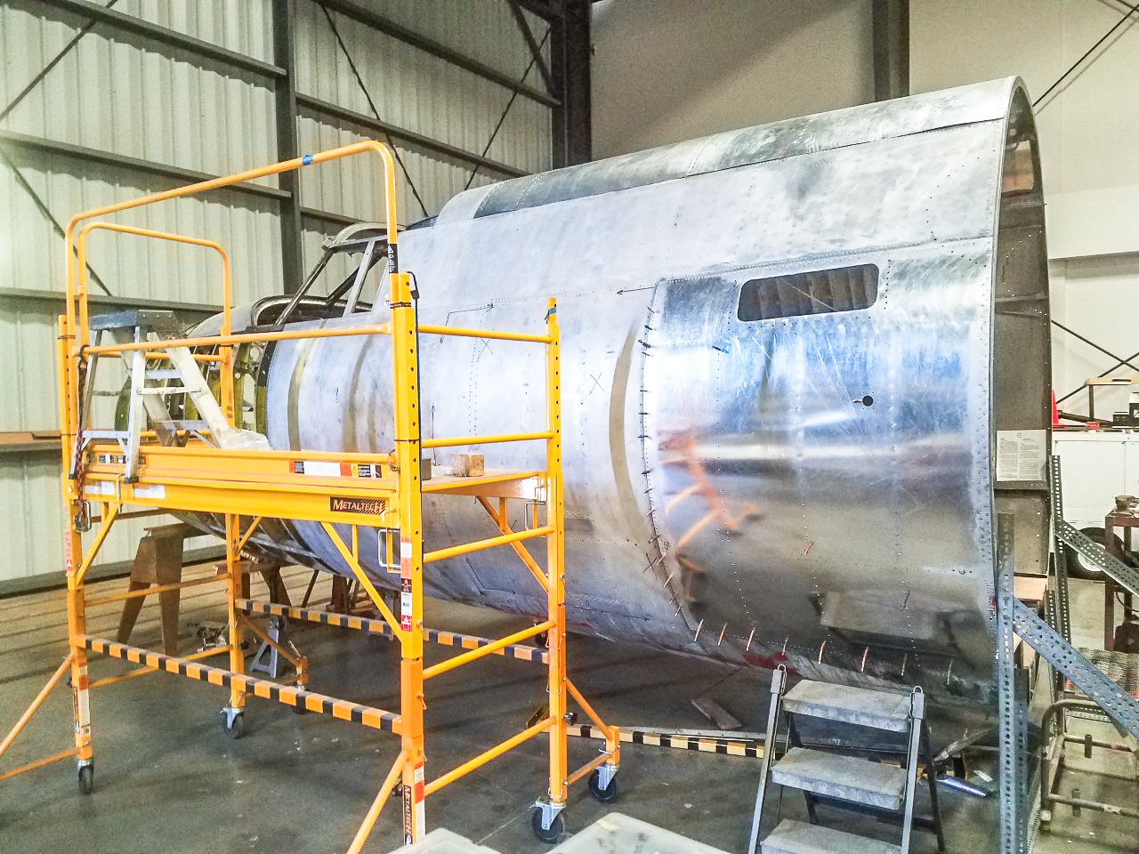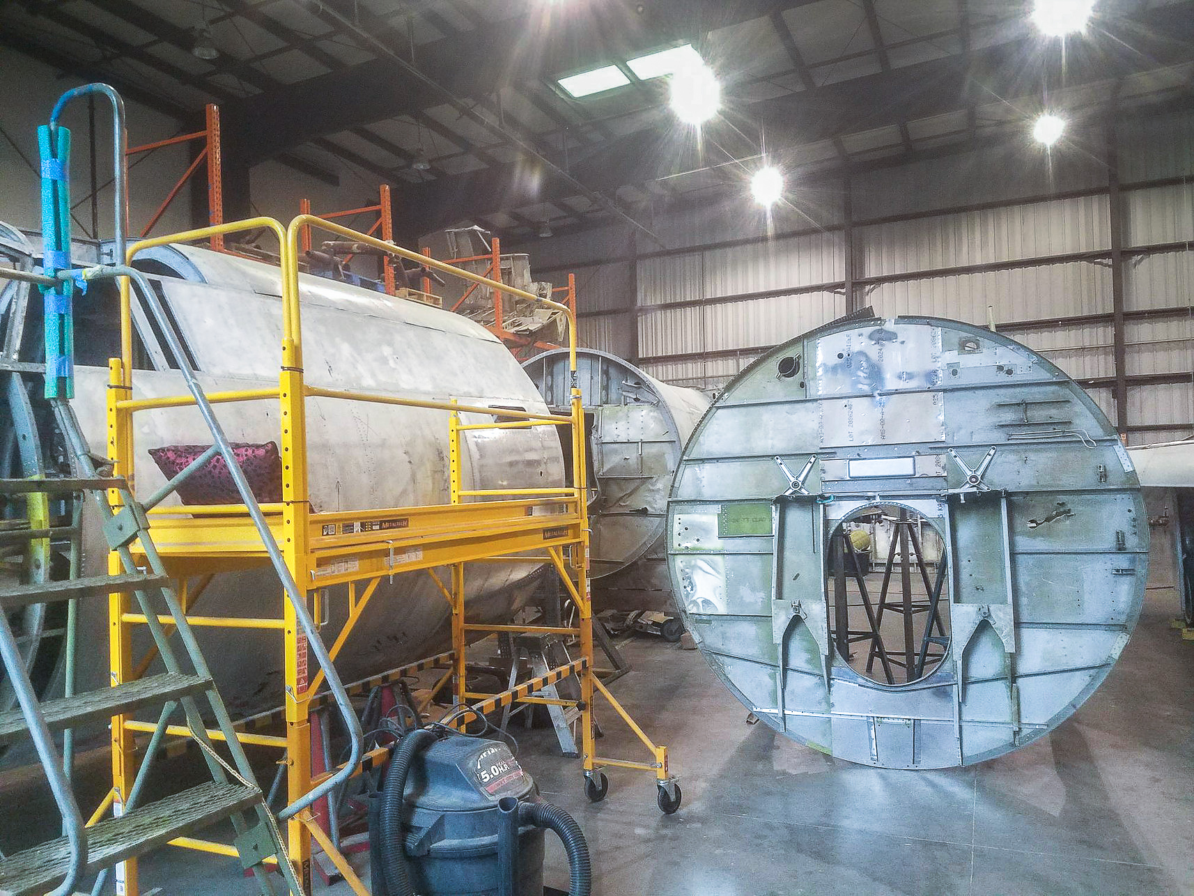 Status: Reassembly of cut up sections/components underway. Main box beam/wing attach points are in very good condition.