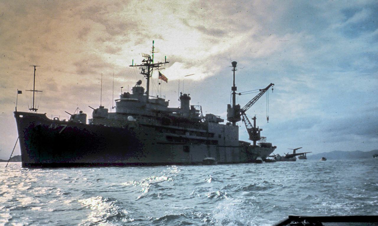 “In October 1966 I was stationed in VP-50’s home port at NAS North Island, San Diego. We were deployed to Sangley Point, Philippines with a 30 day TAD (Temporary Additional Duty) detachment to Cam Ranh Bay, Republic of Vietnam. There we operated off a sea plane tender; in our case the USS Currituck (AV 7). We were involved in Operation Market Time, the interdiction of supplies coming down the coast of North Vietnam into South Vietnam. The SP-5B Marlin would take off and fly a four hour round-trip patrol north of Cam Ranh Bay or a four hour round-trip patrol south of the base.