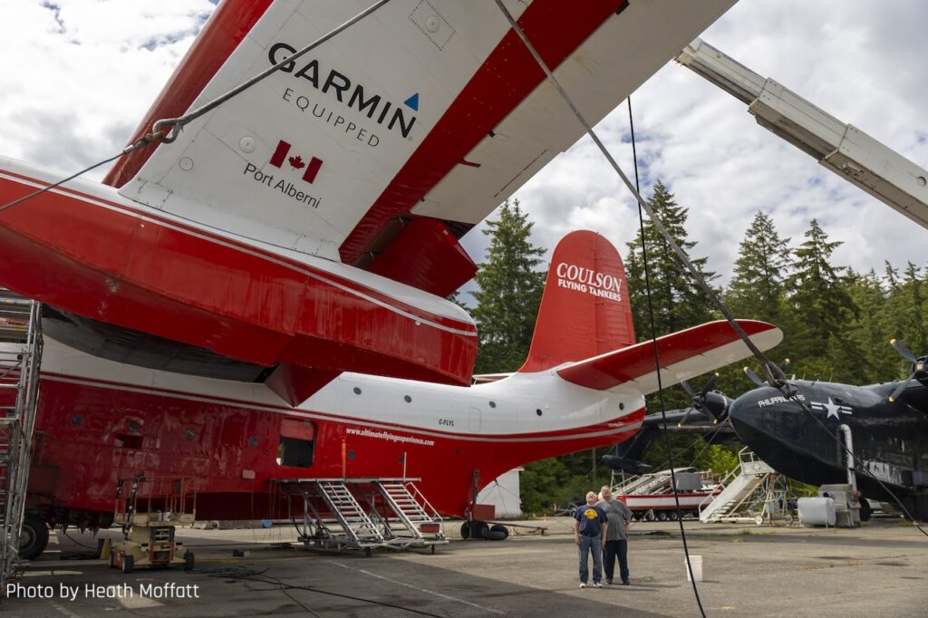 “But it’ll be a ferry flight that will just have the pilots and engineers on board. As long as the weather is going great, it will take off from Sproat Lake on Vancouver Island, where it’s been based its entire working life, fly about 20 minutes over the Vancouver Island, and hopefully down the east coast of the island where most people live, and then land on the ocean beside Victoria Airport. We will then tie it up to a buoy. After that, the team at Sproat Lake will drive the beaching gear equipment to Victoria, and the next day they’ll attach the gear and bring the airplane out of the water.”