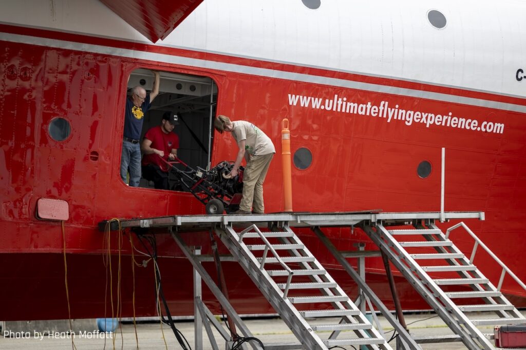 It will take about five days to transfer the Mars into the cradle. Once that is completed, then all of the airport fences will come down briefly so the aircraft can be moved across the runway to its final destination. Obviously, this will take place in the middle of the night when the runways are closed. By the morning, the Mars will be set up beside the museum. It’ll become a static display for the first month or two, so museum volunteers can prepare the airframe interior for visitors. It will then become an open display once the museum has figured out the proper way to flow visitors through it.