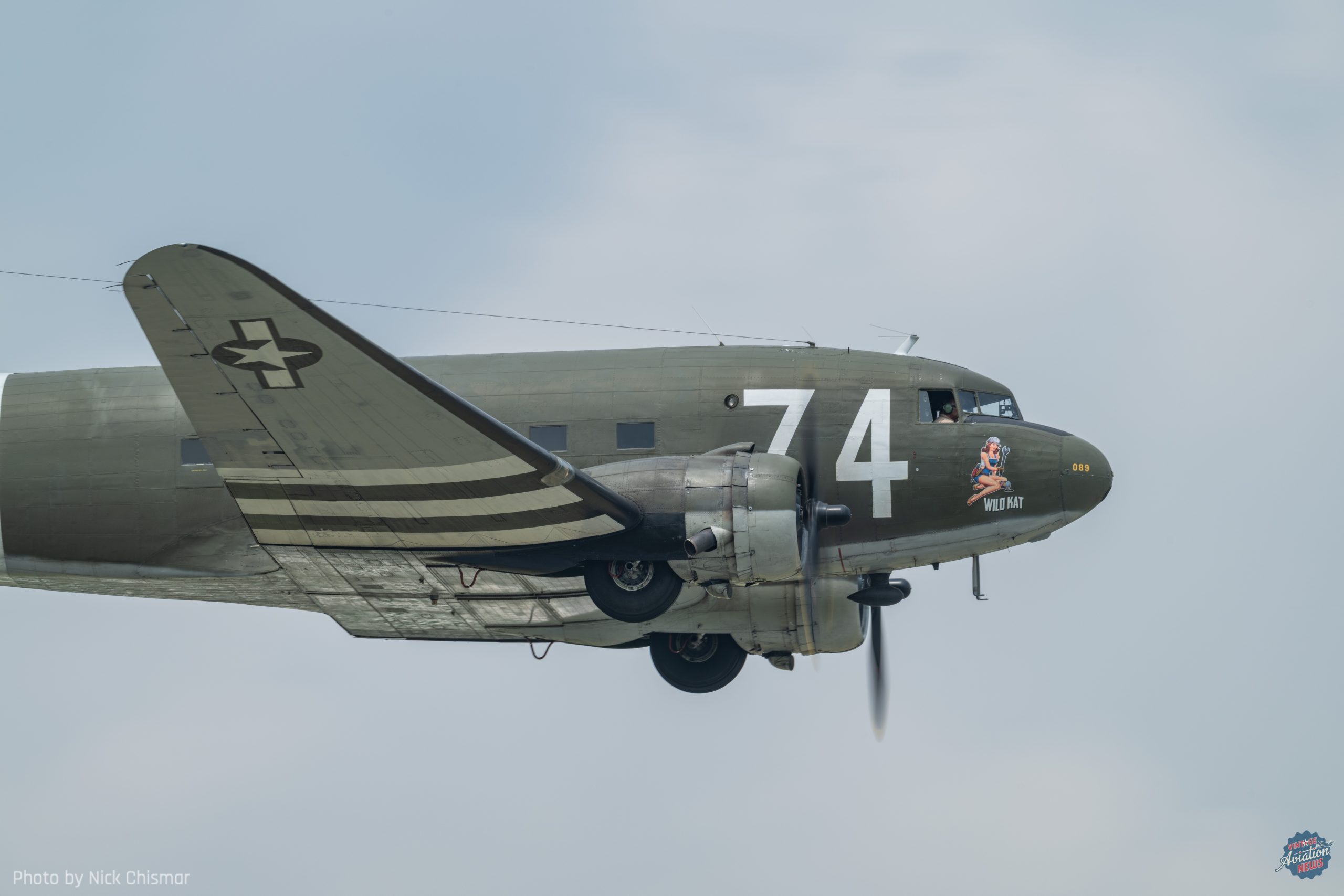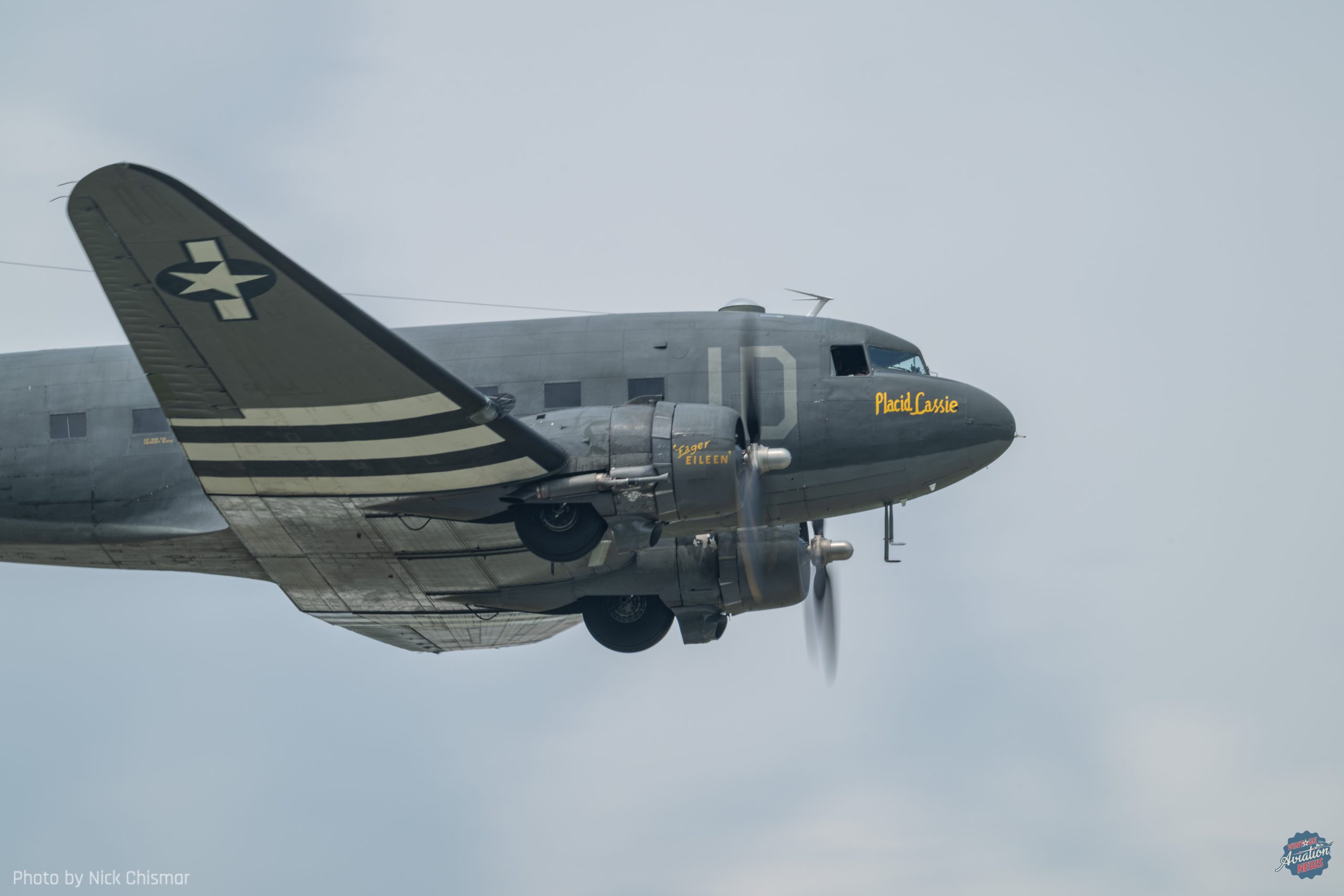 As noon approached and ride flights cycled through, the official airshow began. Placid Lassie and Wild Cat kicked off the program with two paratroop drops from the WWII Airborne Demonstration Team. After their check pass, the C-47s made two precise jumps over the field before each returned for a photo pass. Following a final flight from Panchito, Friday’s flying schedule was cut short as scattered thunderstorms rolled in, bringing steady rain for the rest of the afternoon.