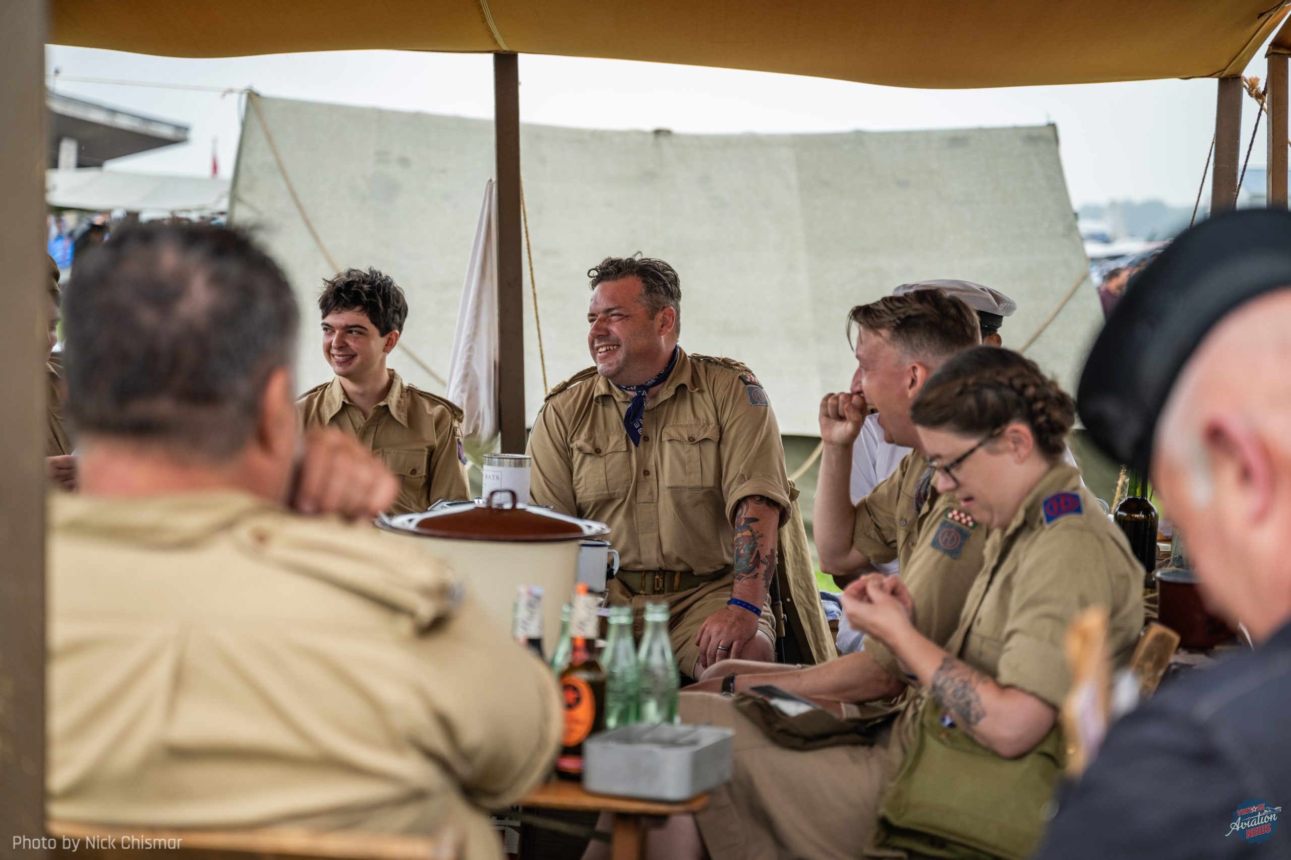 By Friday morning, spectators were already streaming in after the gates opened. With over 1,500 reenactors spread across the grounds, there was always something to see. Visitors explored the encampments and static displays, including four “gooney birds”: C-49 Wild Cat, C-47 Placid Lassie, C-47 Luck of the Irish, and C-53 Beach City Baby, all open for tours. Nearby, a line formed outside the Berlin Airlift Historical Foundation’s C-54 Spirit of Freedom, as people waited to explore the flying museum.