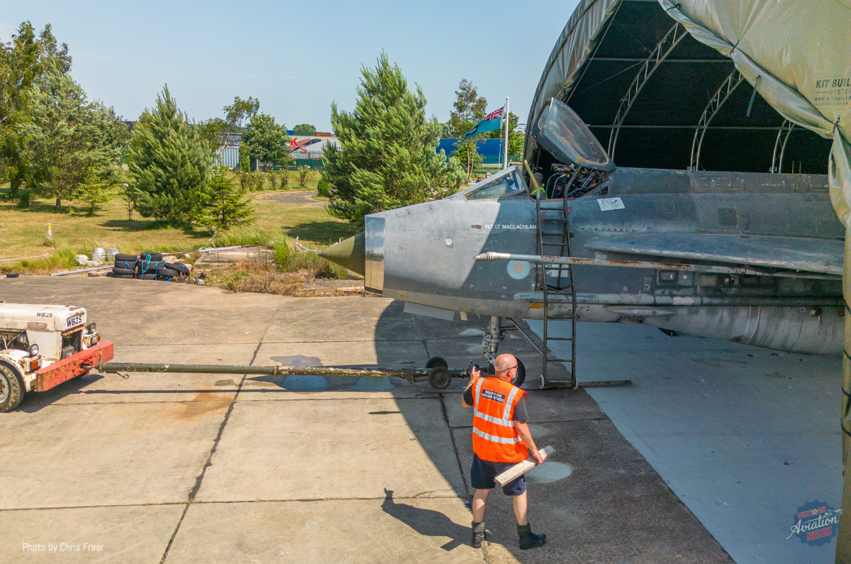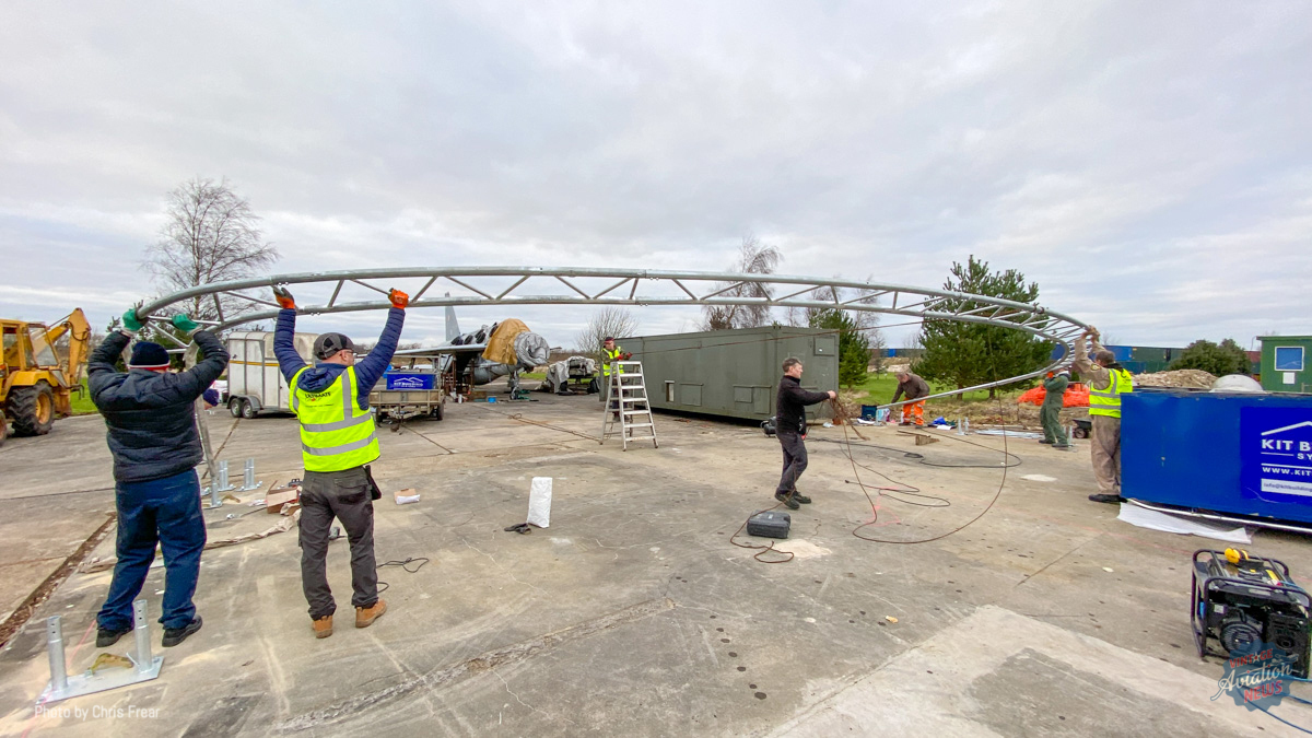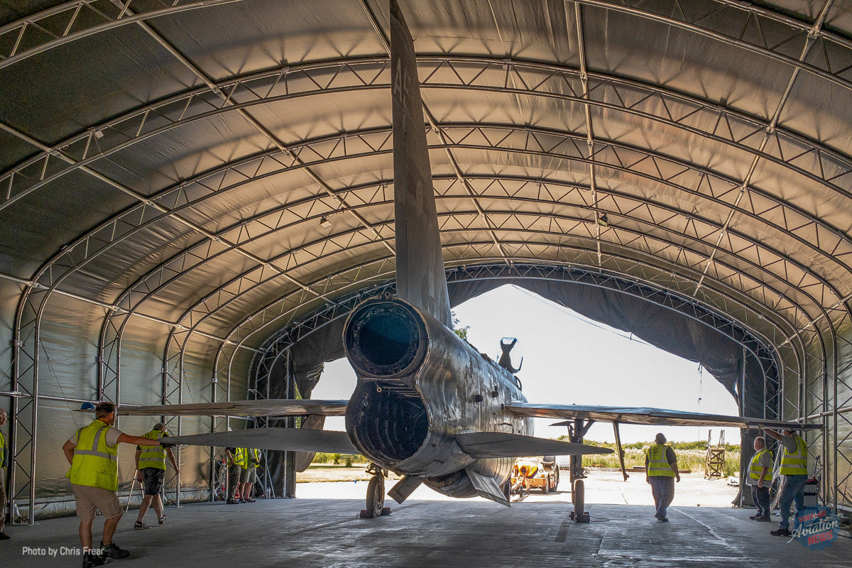 Members of the Association started to build the new hangar within days of receiving planning permission back in February. Jon Dean, a member of the team described the move as a “massive relief” when after decades outside, covered by tarpaulins and exposed to the elements, XR724 was inched with millimeters to spare into her new home, with brakes applied and wheels chocked.