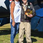 For several hours Obie posed for photographs, spoke to his old friends from MAM, fielded questions from museum visitors, and was interviewed by WTKR Channel 3’s Erin Miller. Then, at 3:00 pm, the ramp was cleared and Mark Murphy and Mike Spalding climbed into the F4U-4 and FG-1D respectively, and roared into the crystalline Virginia skies for a brief flight demonstration. Spectators were thrilled at the sight and sound of a pair of Bent Wing Birds over the museum, but none more than Obie as he had a personal connection with both aircraft. Since the day was about reuniting Obie with the F4U-4, his association with MAM’s FG-1D was lost somewhat. That aircraft was equally special to him because the last time Obie took to the skies as a pilot in 2017, it was fittingly at the controls of MAM’s Corsair.