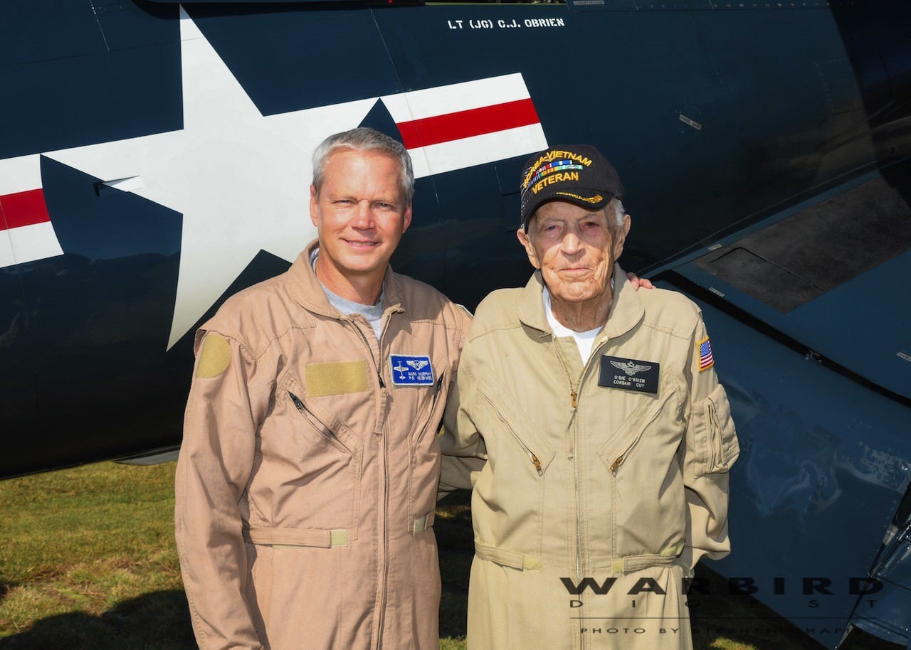 It’s great to see my friend ‘Obie Wan’ in ‘the news’ in more recent times. A large part of my own 19 yrs. flying at MAM were spent sharing good fellowship with Obie. He a good man, and a great American. I was chuffed to discover that Obie’s combat Corsair was formally owned by Trent Latshaw. Accordingly, there were occasions when I had a Liberty Foundation tour B-17 (Movie Memphis Belle in this case) at Tulsa, and Trent came up to join us in flight with this Corsair.