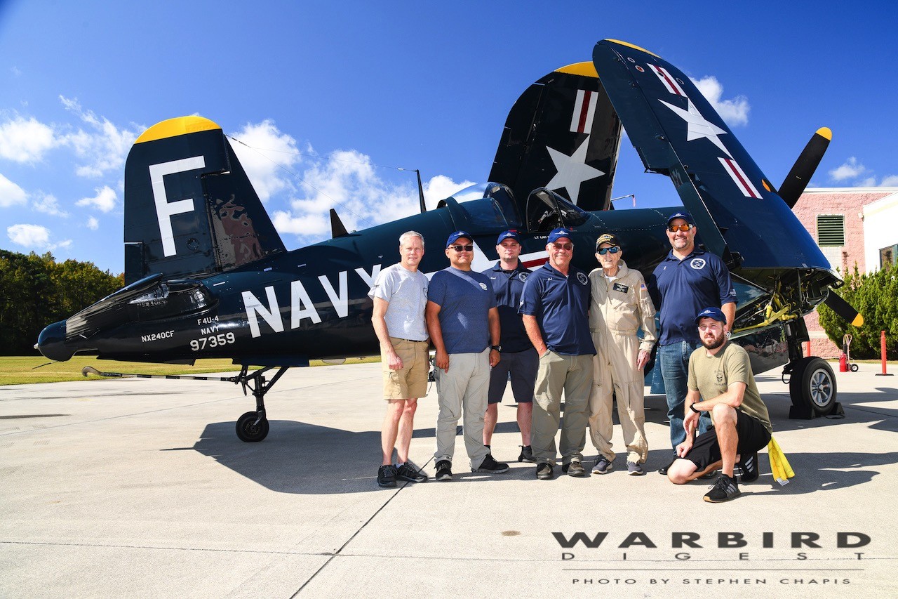 In February 2021, the Ocala, Florida-based American Honor Foundation (AHF) added Vought F4U-4 Corsair BuNo 97359 for their collection. As many readers know, this aircraft is one of the more famous Corsairs flying today, as it’s a Korean War combat veteran, one of the stars of Baa Baa Black Sheep, and it graced the pages of Warbird Digest in 2012, when then-85-year-old Charles Joseph “Obie” O’Brien, CDR, USN (Ret), who flew it on three of his twenty-four combat missions, flew it once again in the skies over Ramona, California. At that time, it was under the ownership of Doug Matthews, who later sold it to Oklahoma resident, Trent Latshaw in 2013.
