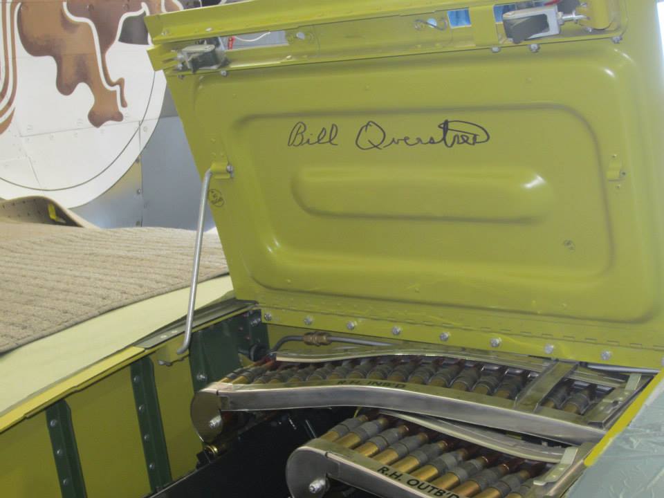 Pacific Fighters has a stellar reputation as a world class warbird restoration shop, but they are fast becoming noted for their prowess with high-back Mustangs. This is the fourth such example to roll out of their hangar, with the prospect of at least two more in the wings. Sporting a “Malcolm Hood” canopy and wearing the markings for “Berlin Express”, Pacific Fighter’s newest Mustang is dressed exactly like the 357th FG Mustang which the legendary American ace Bill Overstreet flew under the Eiffel tower while successfully shooting down a Messerschmitt Me-109 in 1944. Sadly Bill Overstreet passed away roughly about a year ago, and never got to see the finished aircraft, however he did see pictures of its progress and signed one of the gun bay doors for the project after Pacific Fighters sent it out to him.